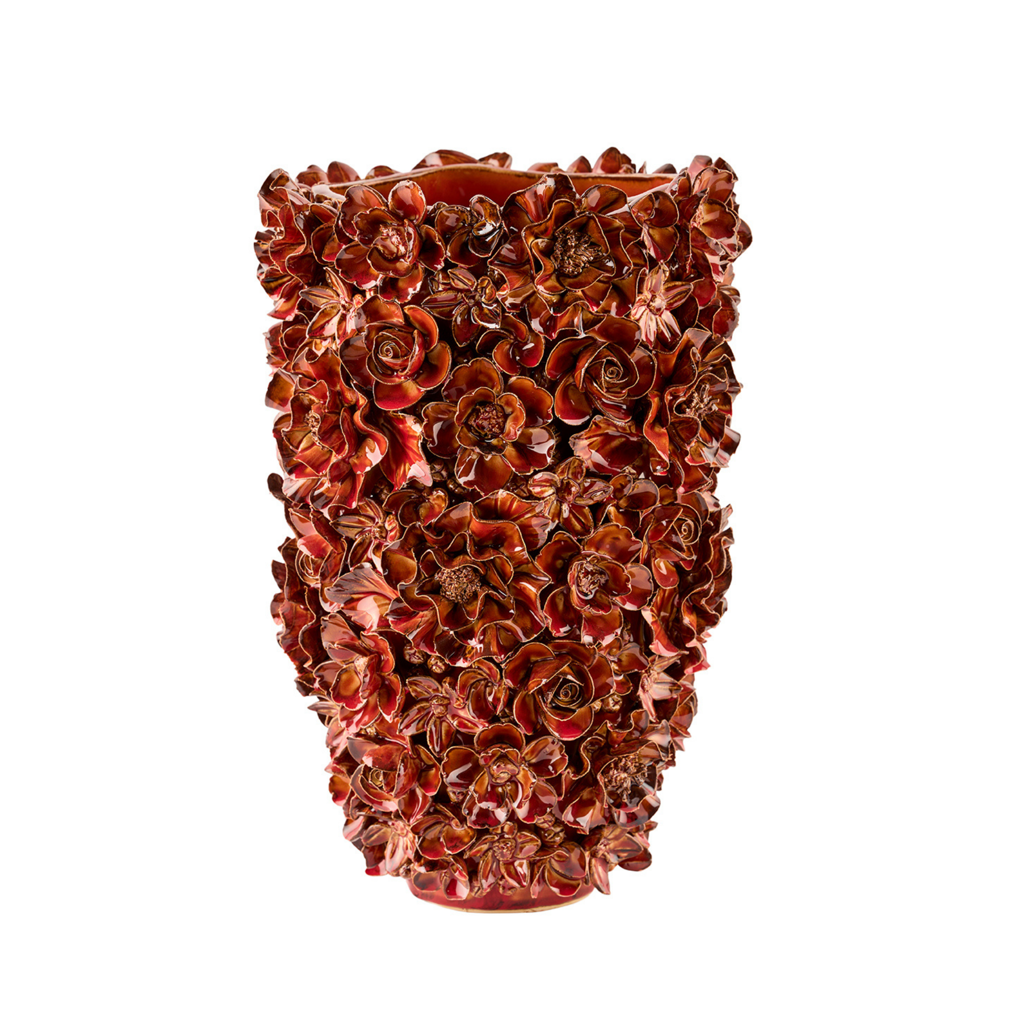 Den blomstret gyldne romance potte i keramik tilføjer et elegant og dekorativt touch og passer både til levende og kunstige blomster, så den bringer stil og varme ind i ethvert rum.