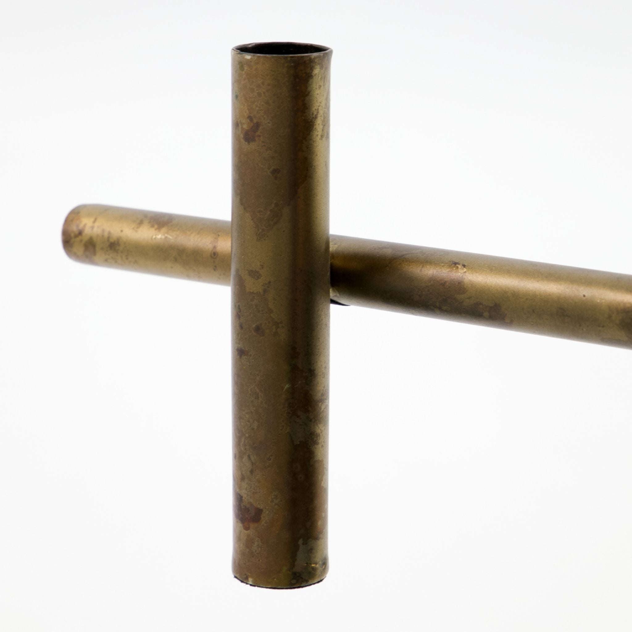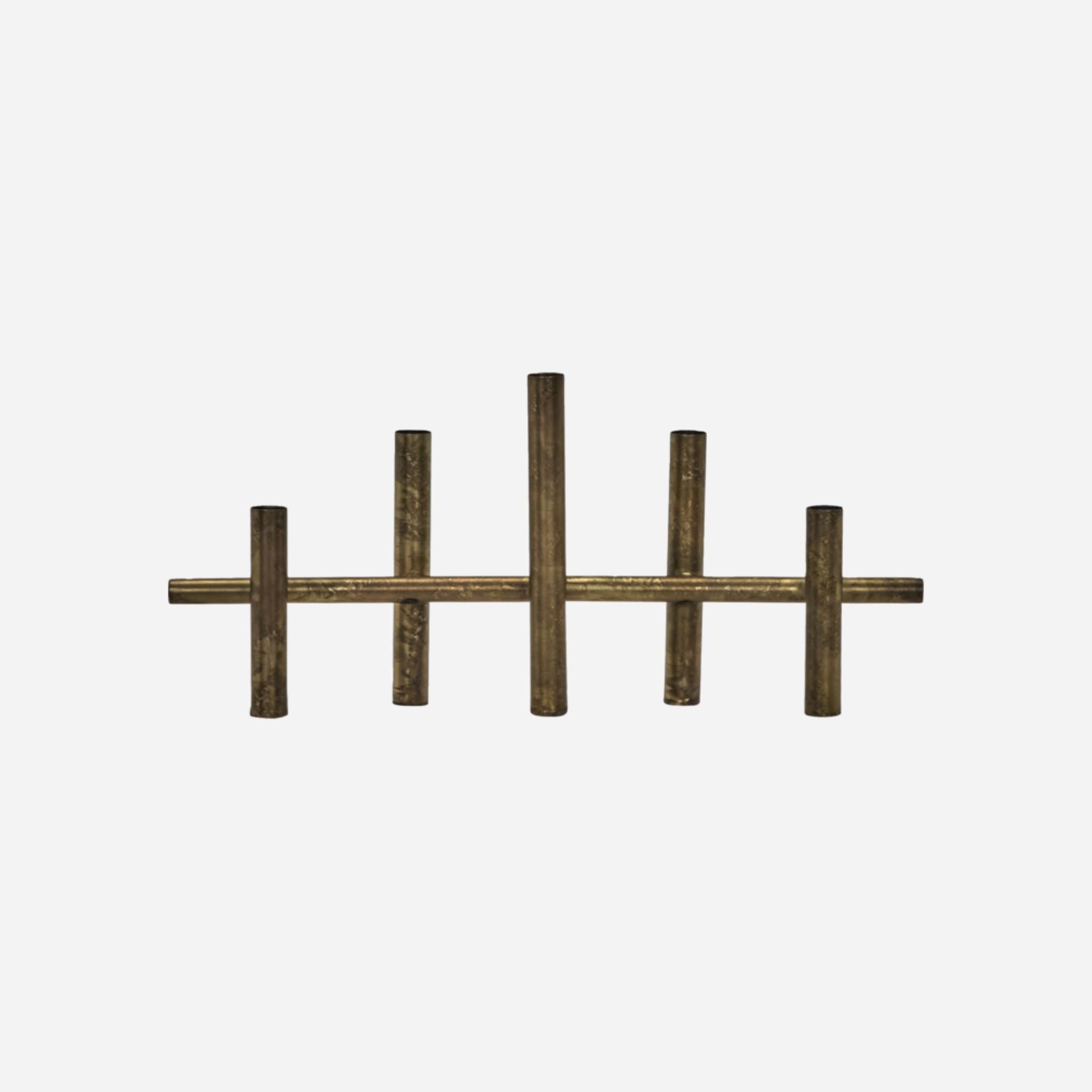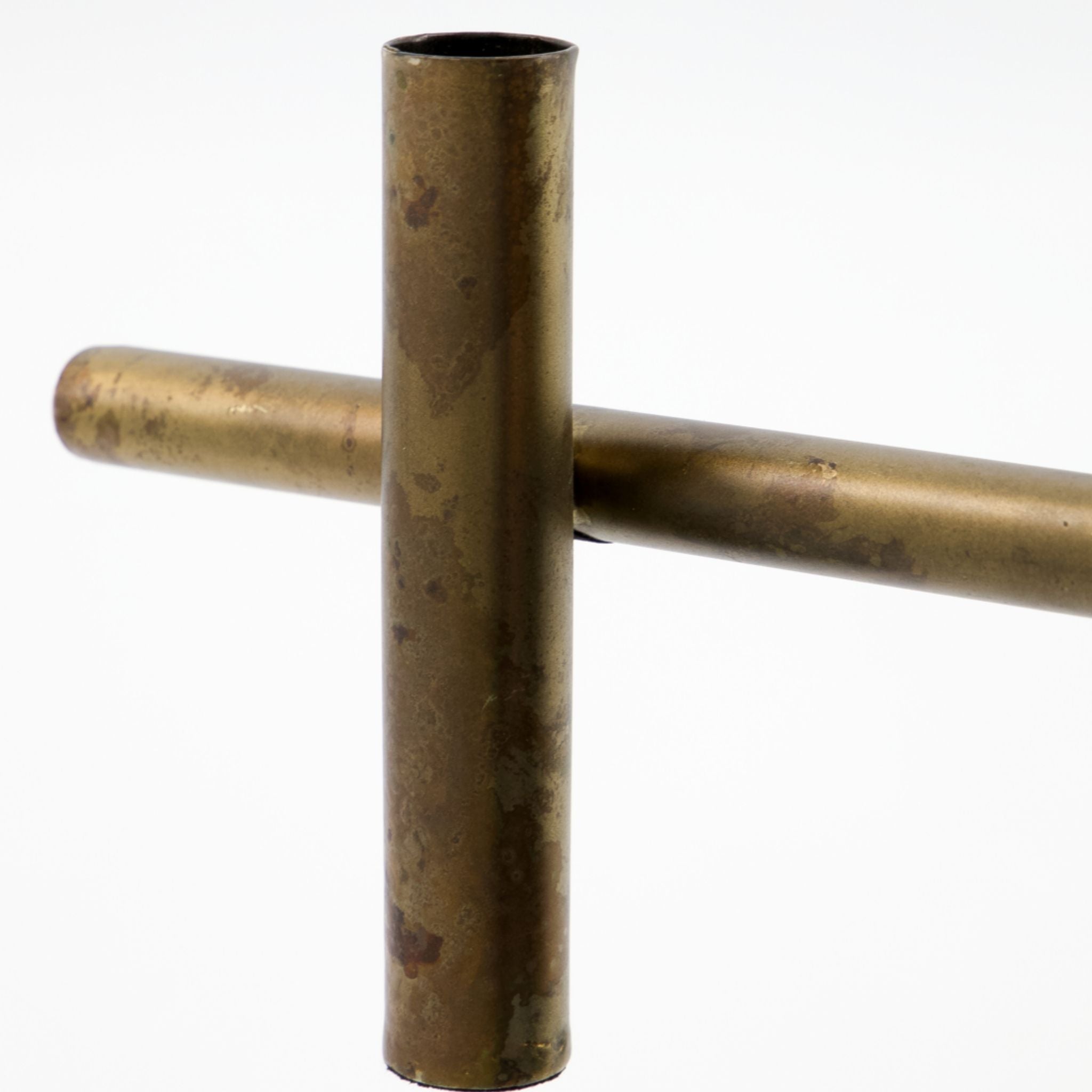 Tilføj et strejf af elegance til dit hjem med denne håndlavede lysestage i jern med antik messing finish.