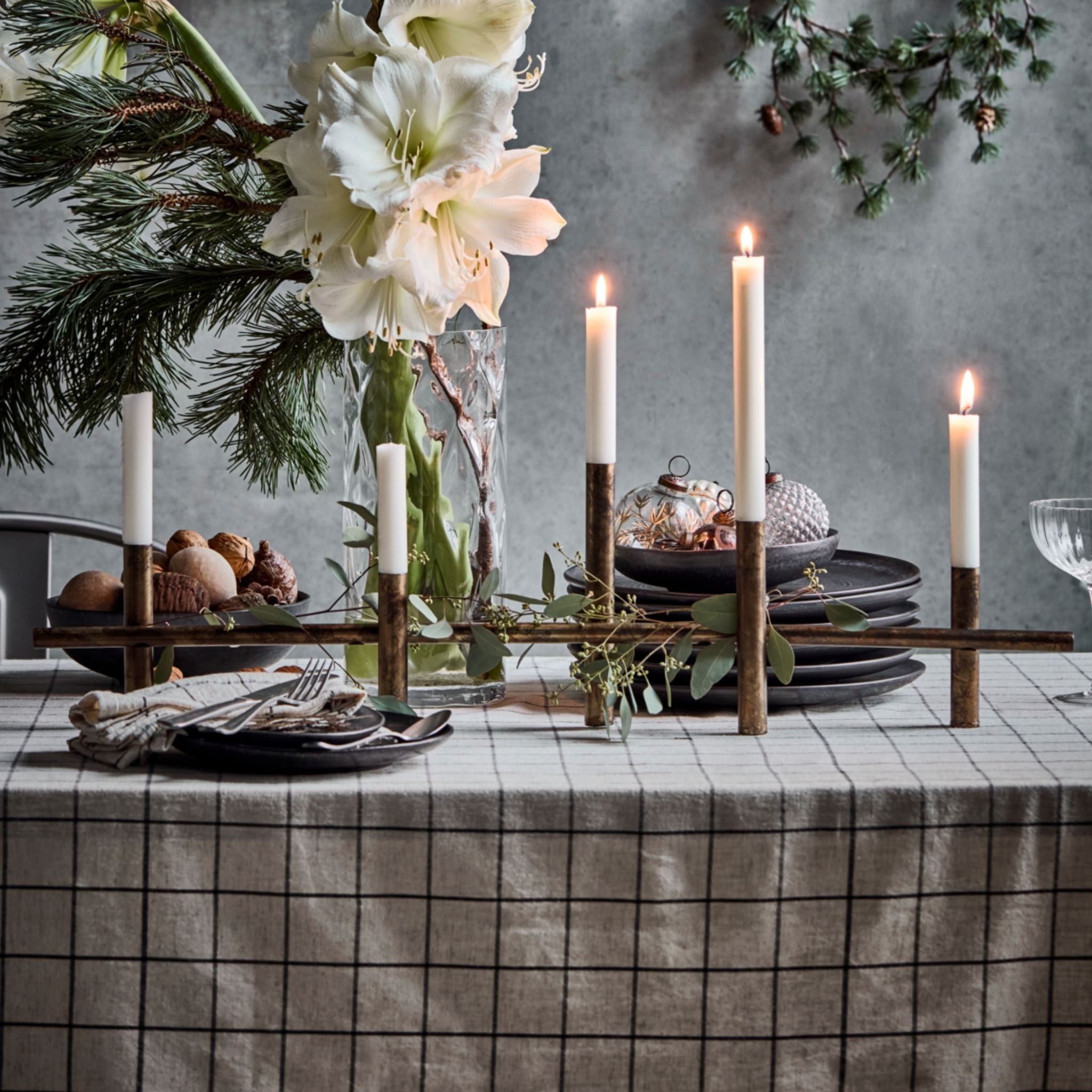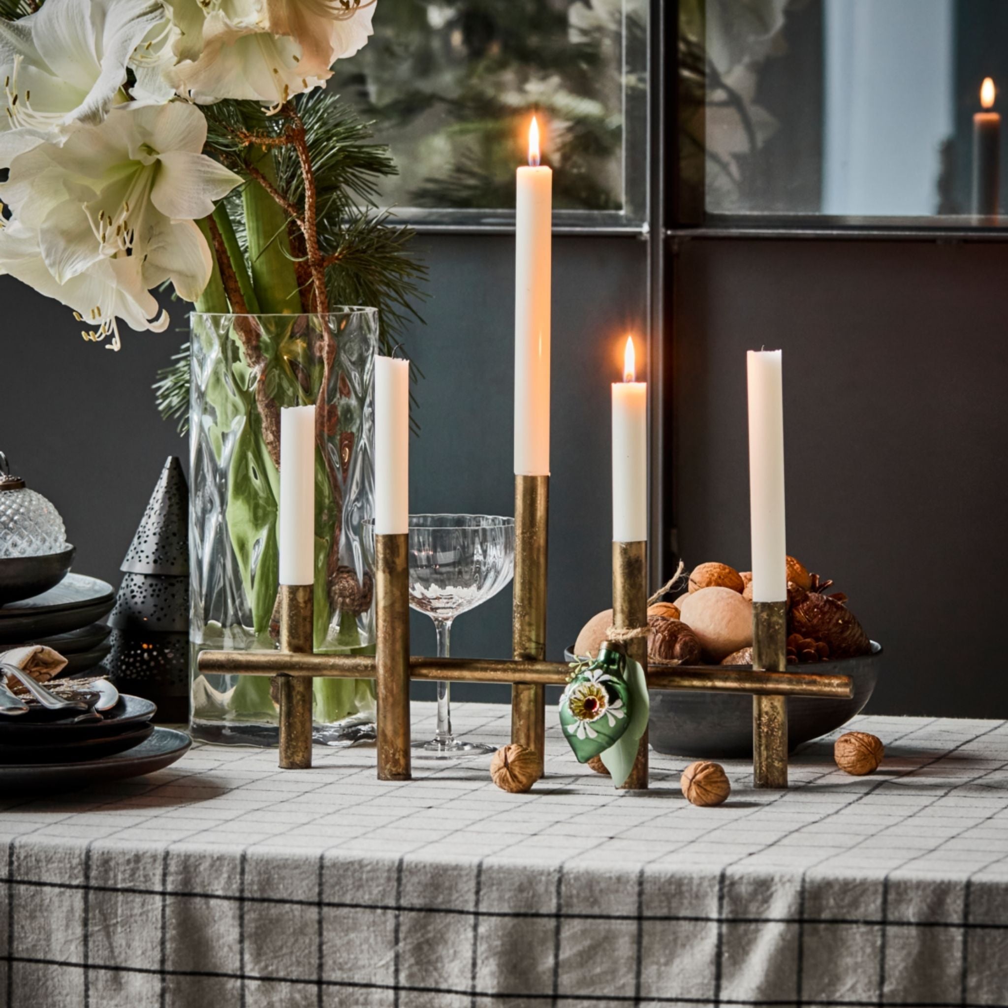 Den unikke kombination af moderne design og vintage charme gør den til et naturligt midtpunkt på dit julebord – eller som en stilfuld detalje i stuen året rundt. Lysestagen passer perfekt med stearinlys som er Ø2,2 cm.