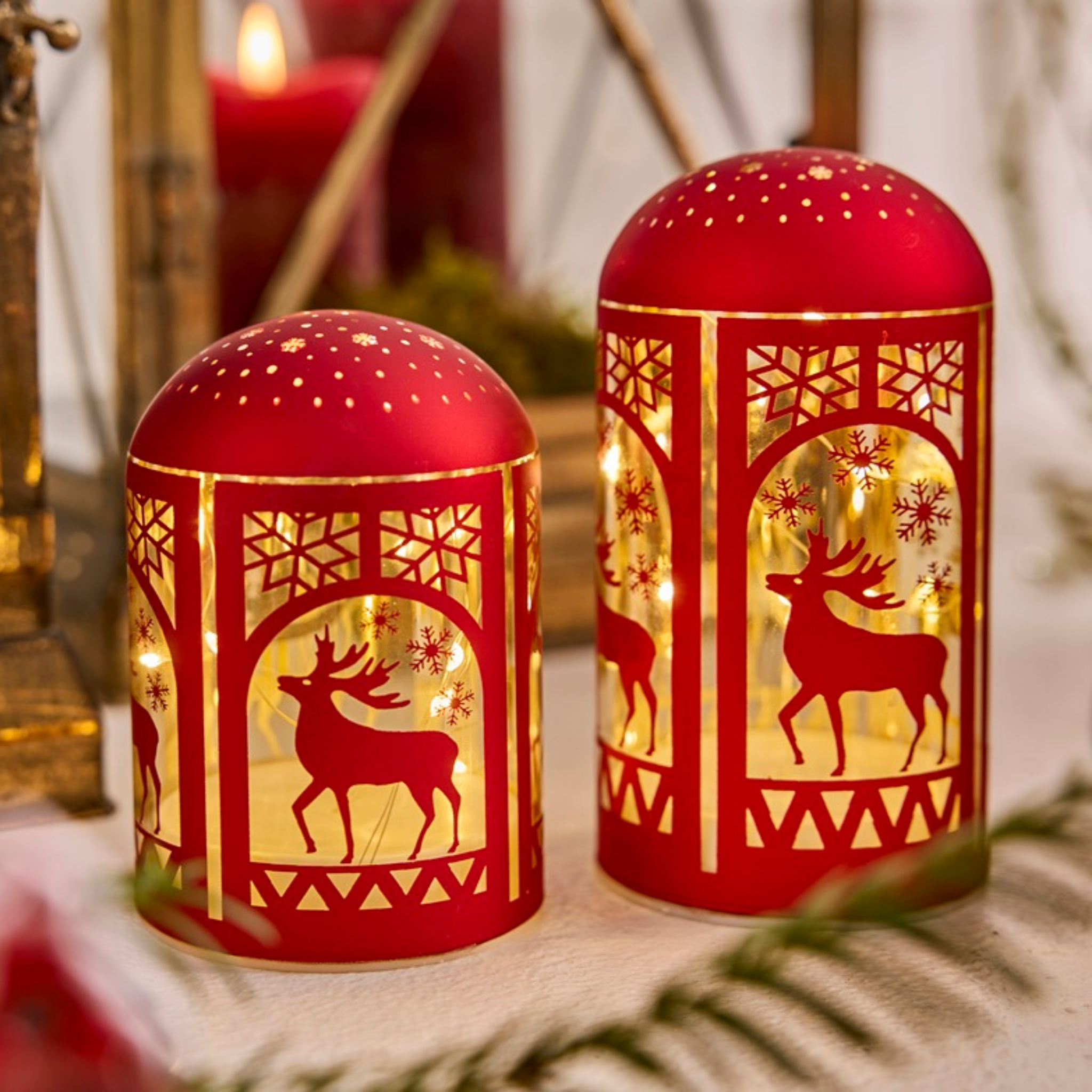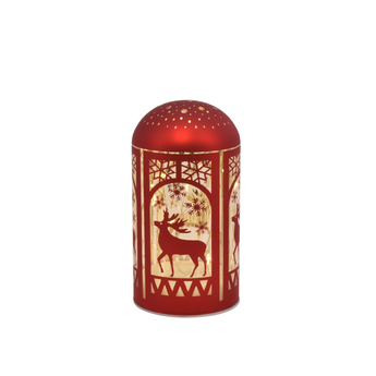 X-Mas glashuset skaber julehygge med sit røde design og fine motiv, hvor lyset trænger igennem og giver en varm glød.