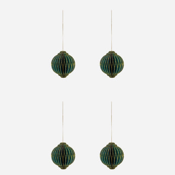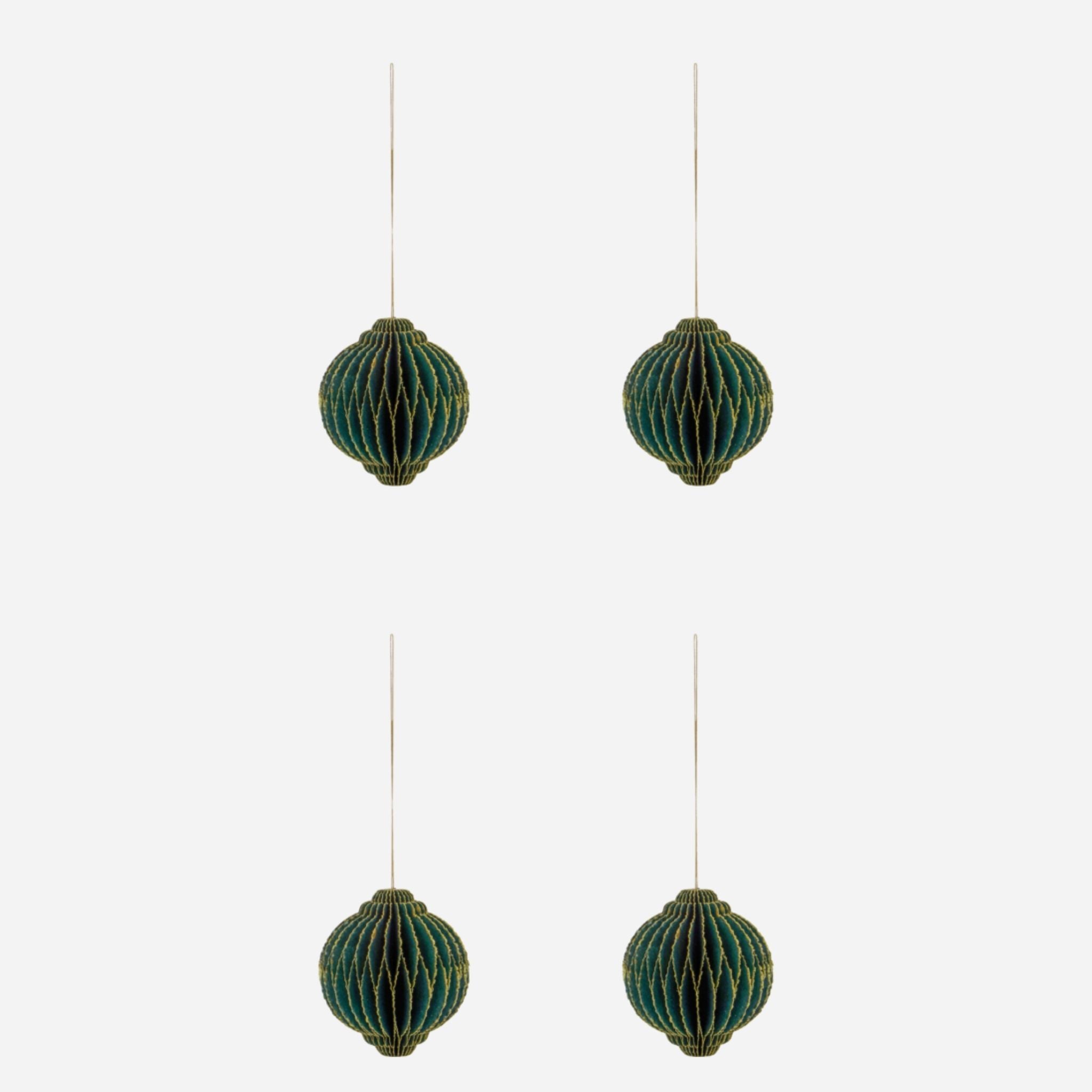 Tilføj et unikt og fortryllende præg til din juleudsmykning med disse smukke håndlavede papirs ornamenter i en dybgrøn farve.