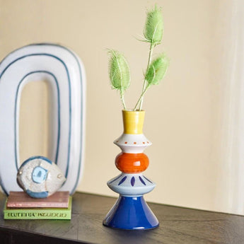 Denne håndmalede, multifarvede stentøjsvase fra Bloomingville er både dekorativ og funktionel og egner sig perfekt til friske blomster, tørrede buketter eller som et kunstnerisk statement på hylden eller bordet.