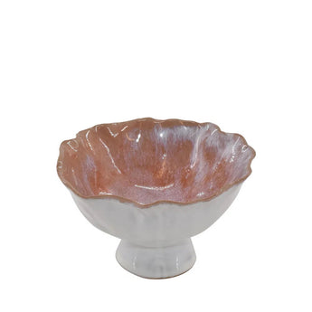 Den bløde rosa eller den skønne grønne farve kombineret med skålens løftede fod giver et let og luftigt udtryk, som gør den ideel både til servering og som dekorativt element i indretningen. Hver skål er unikt glaseret, hvilket tilføjer karakter og varme til borddækningen.