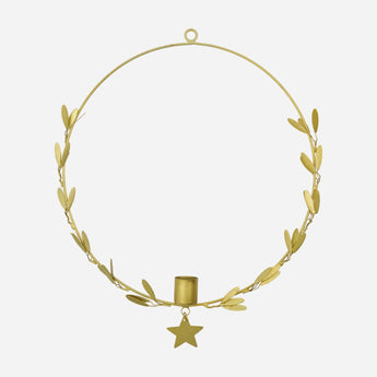 Lysestagen er håndlavet og har en smuk messingoverflade og er dekoreret med blade og en stjerne, som giver ekstra detalje og julestemning.