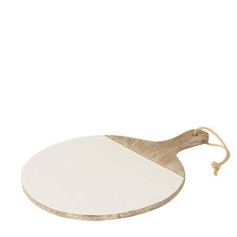 Skærebrættet er fremstillet af mangotræ som har fået en hvid coating.