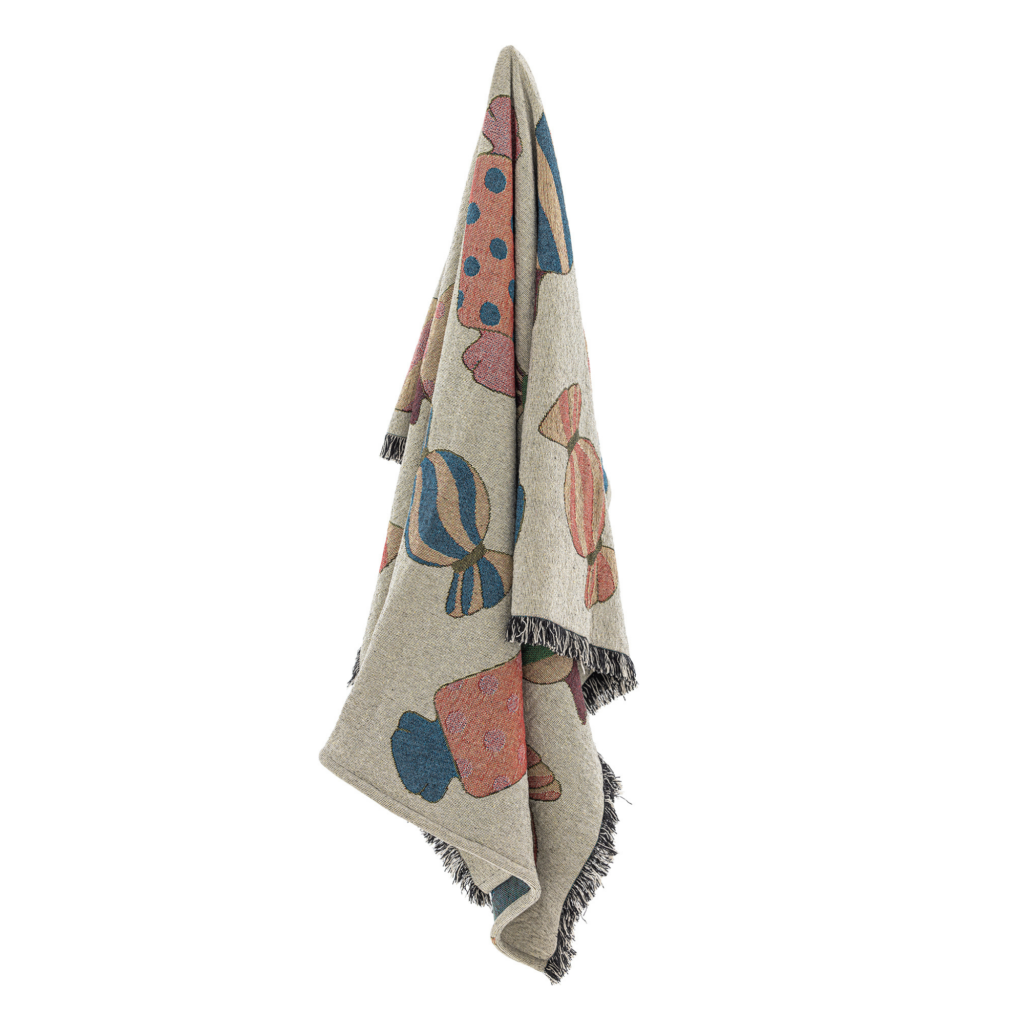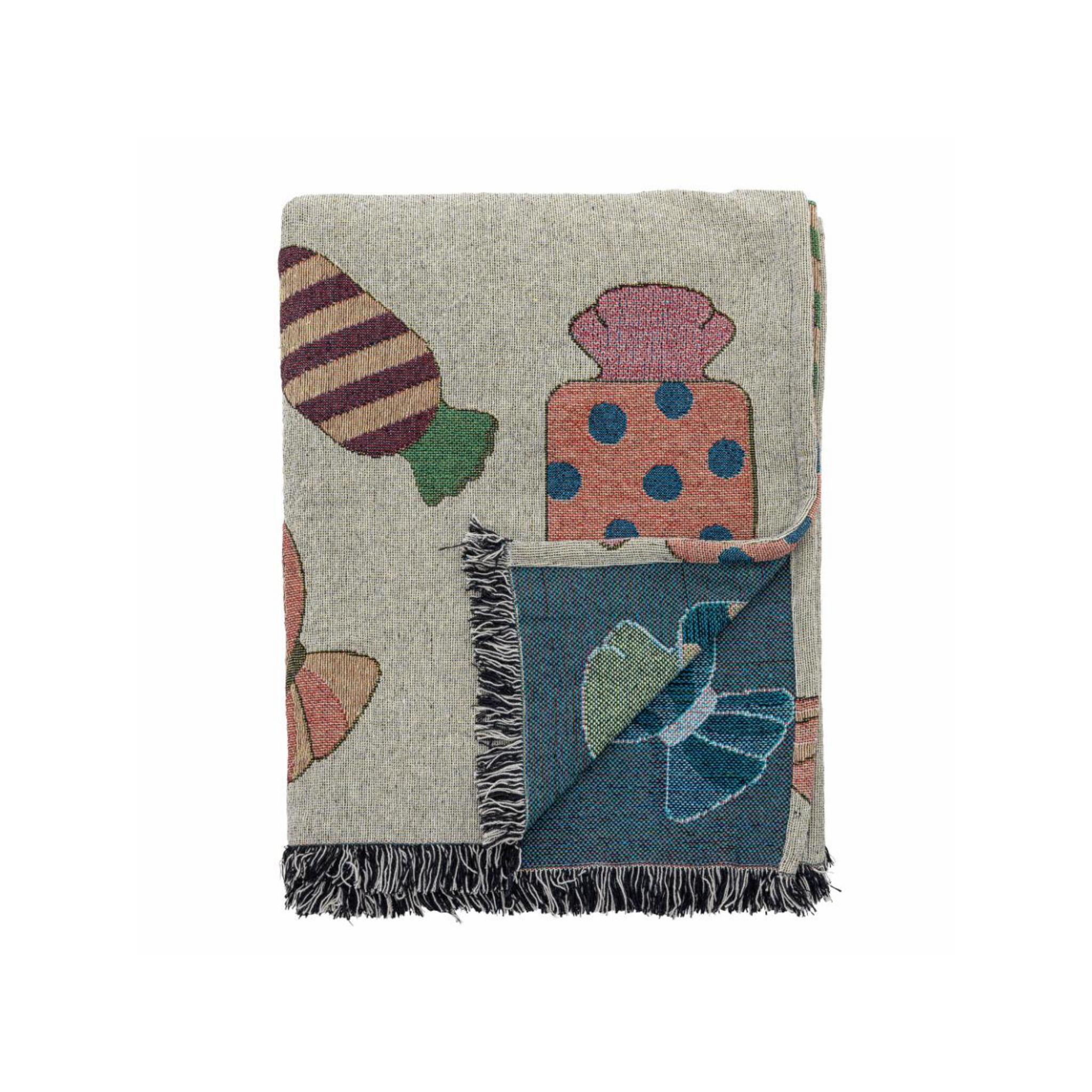 Caramella-tæppet fra Bloomingville bringer sødme og hygge ind i hjemmet – uden dårlig samvittighed. Det er lavet af blød, genanvendt bomuld, hvilket gør det både behageligt og miljøvenligt. Den dobbeltsidede jacquardvævning giver mulighed for at variere udtrykket, mens de fine frynser tilfører et afslappet og kunstnerisk præg.