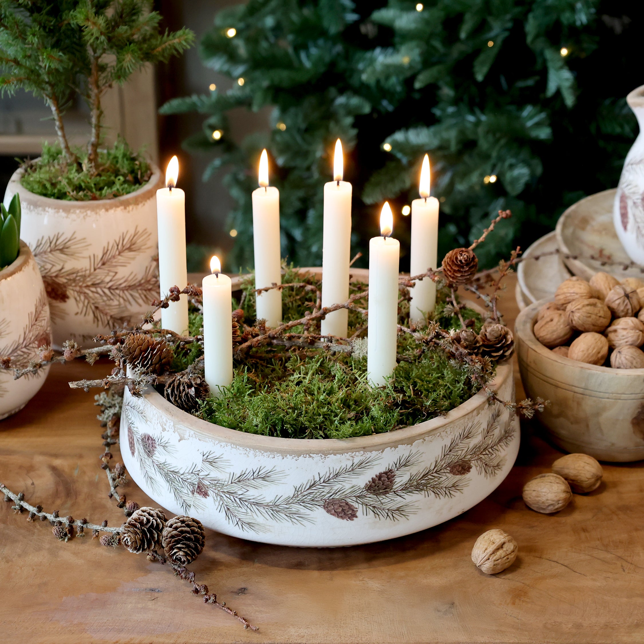 Fint, hyggeligt og nostalgisk keramik fad med granranke motiv fra Chic Antique.
