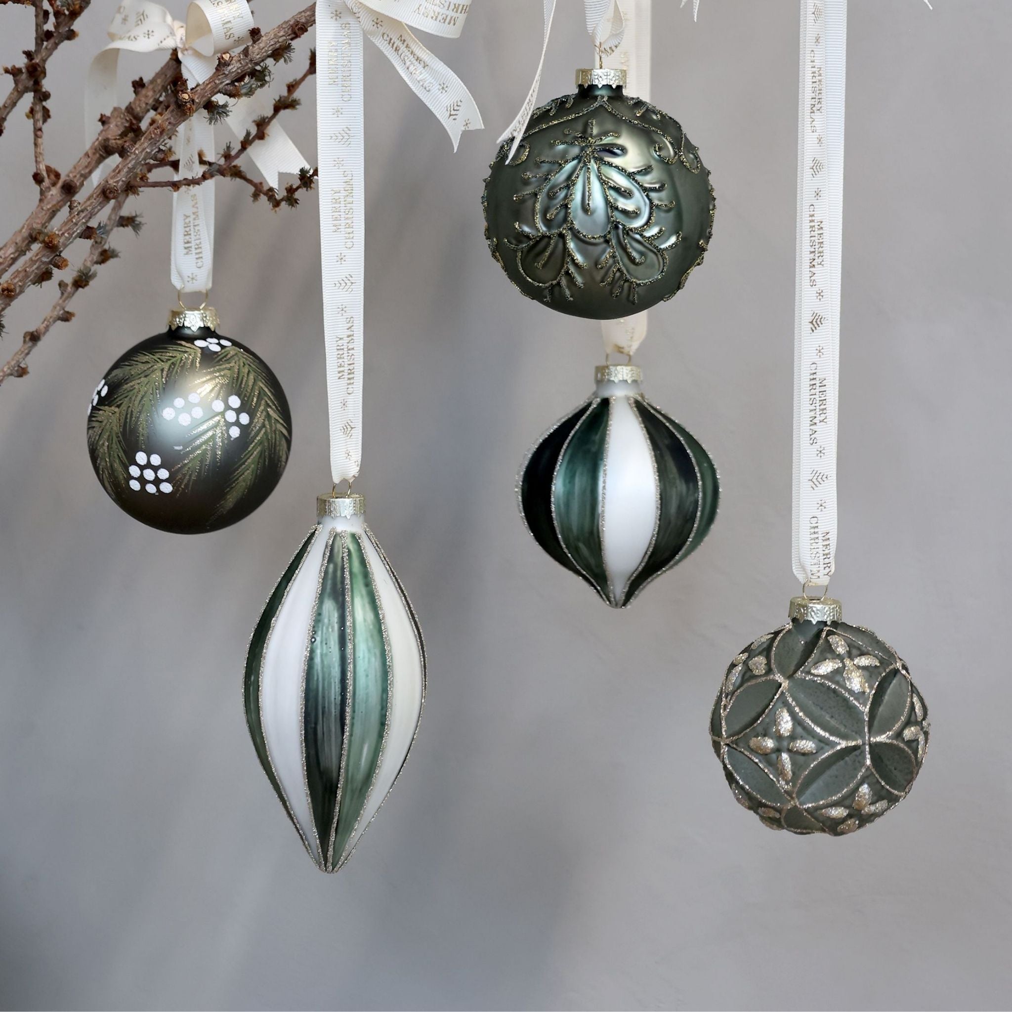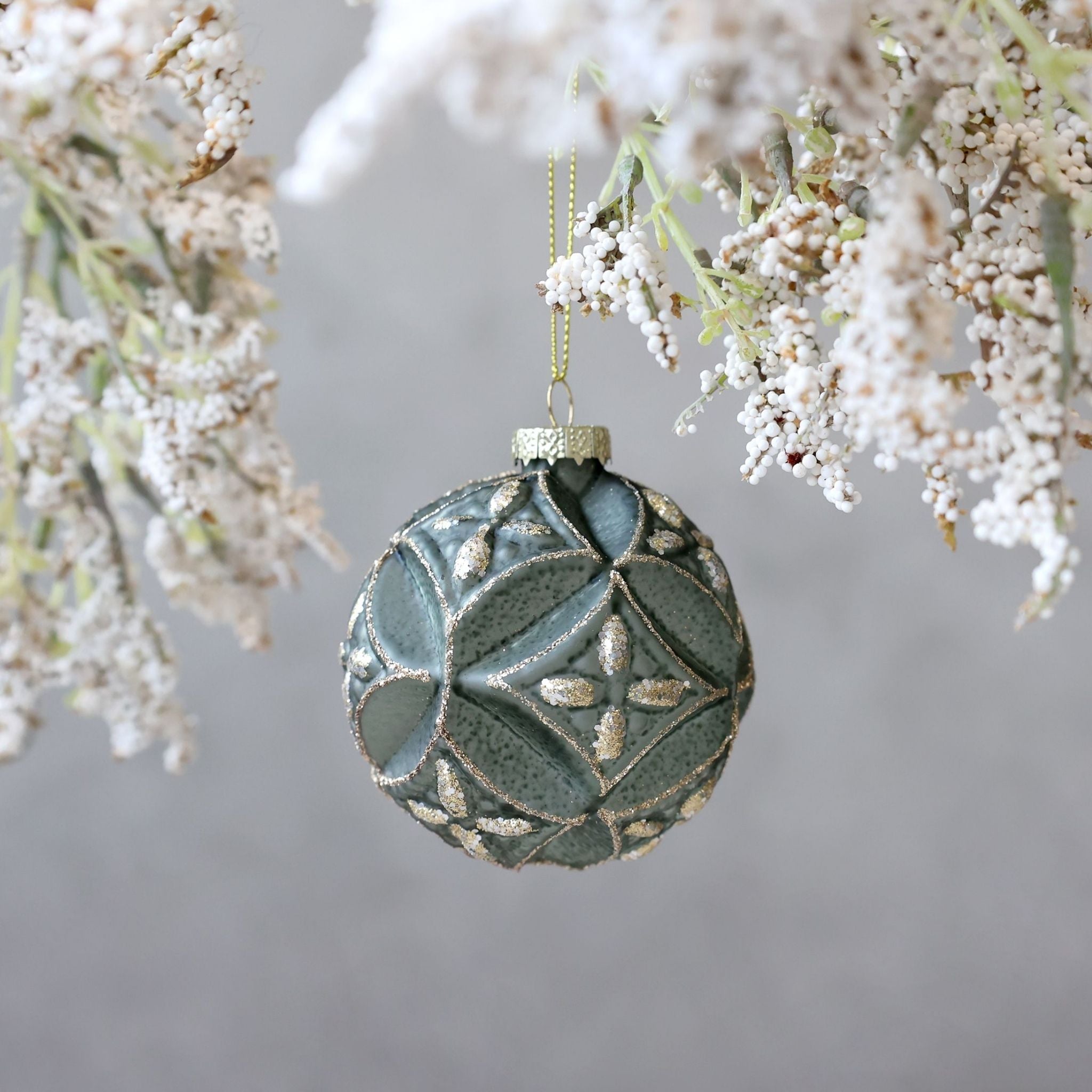 Julekugle med glimmer Ø8 cm mos - Chic Antique