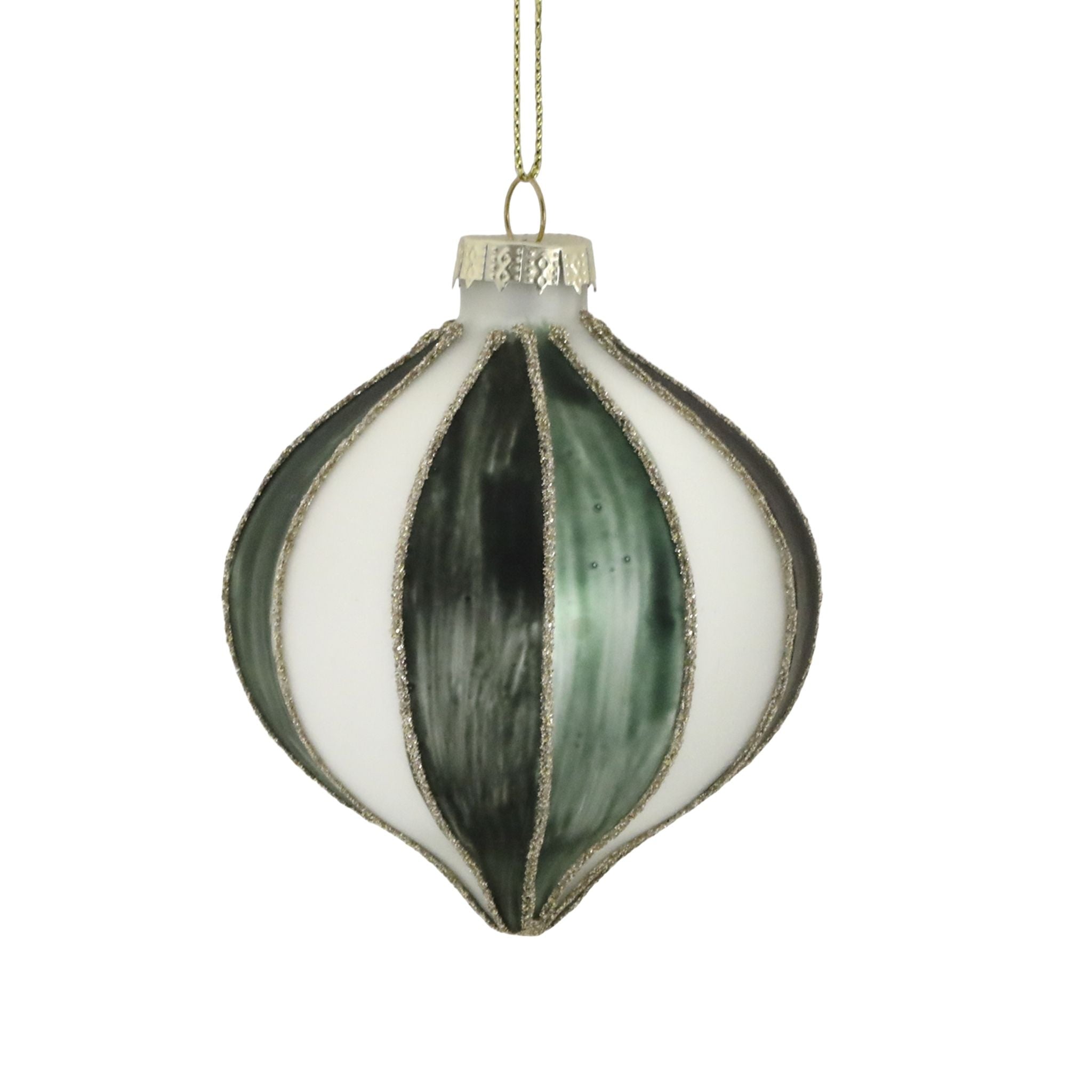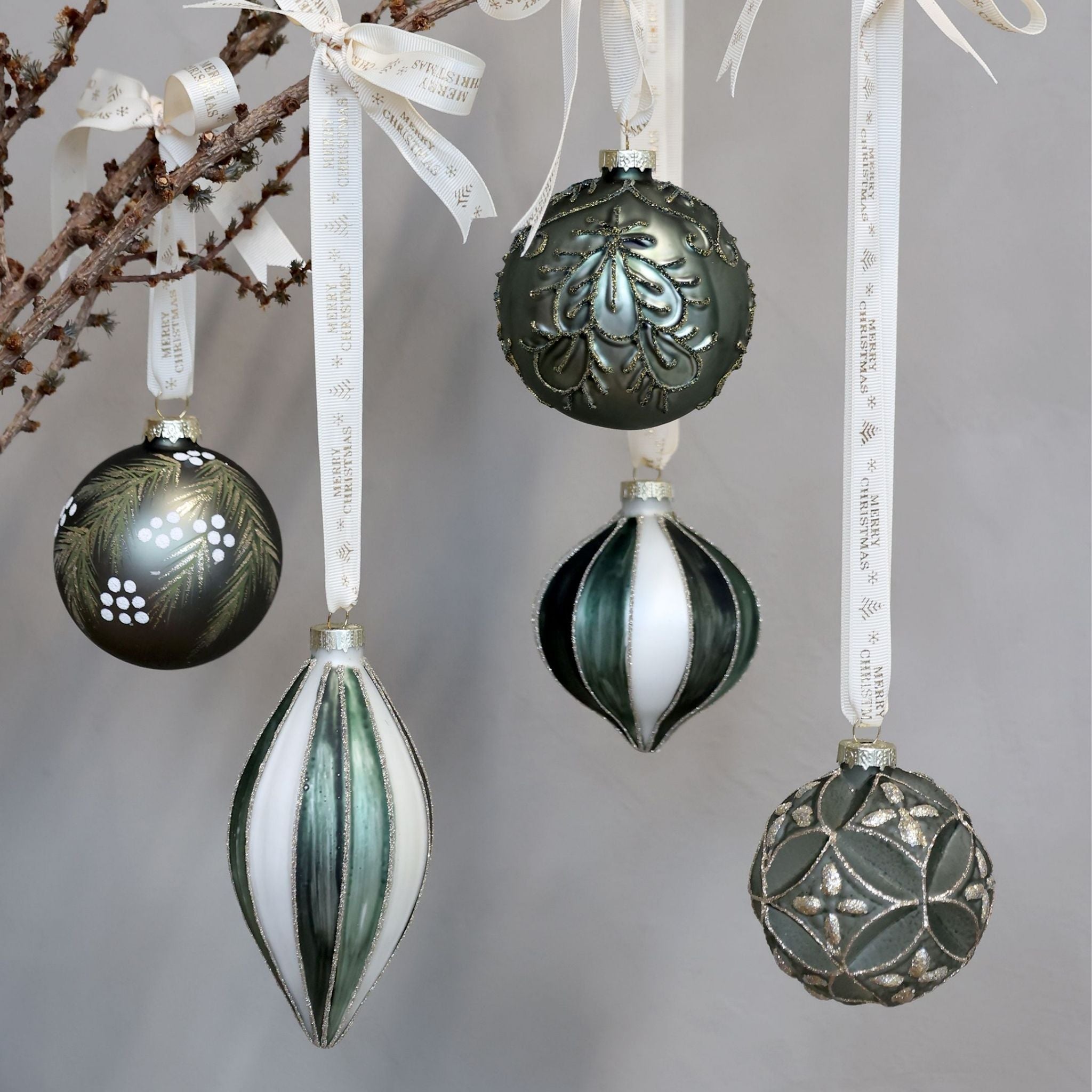Julekugle med striber Ø8 cm mos - Chic Antique