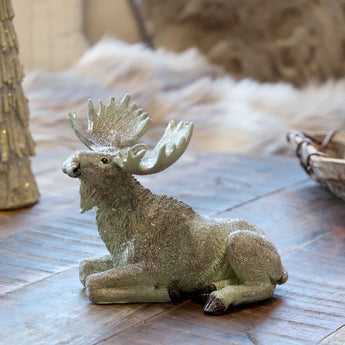 Pynt op til jul med denne fine håndmalet elg med glimmer fra Chic Antique. Kombiner elgen med nogle fine juletræer eller pynte gran og skab en juledekoration der kan få alle i julestemning.
