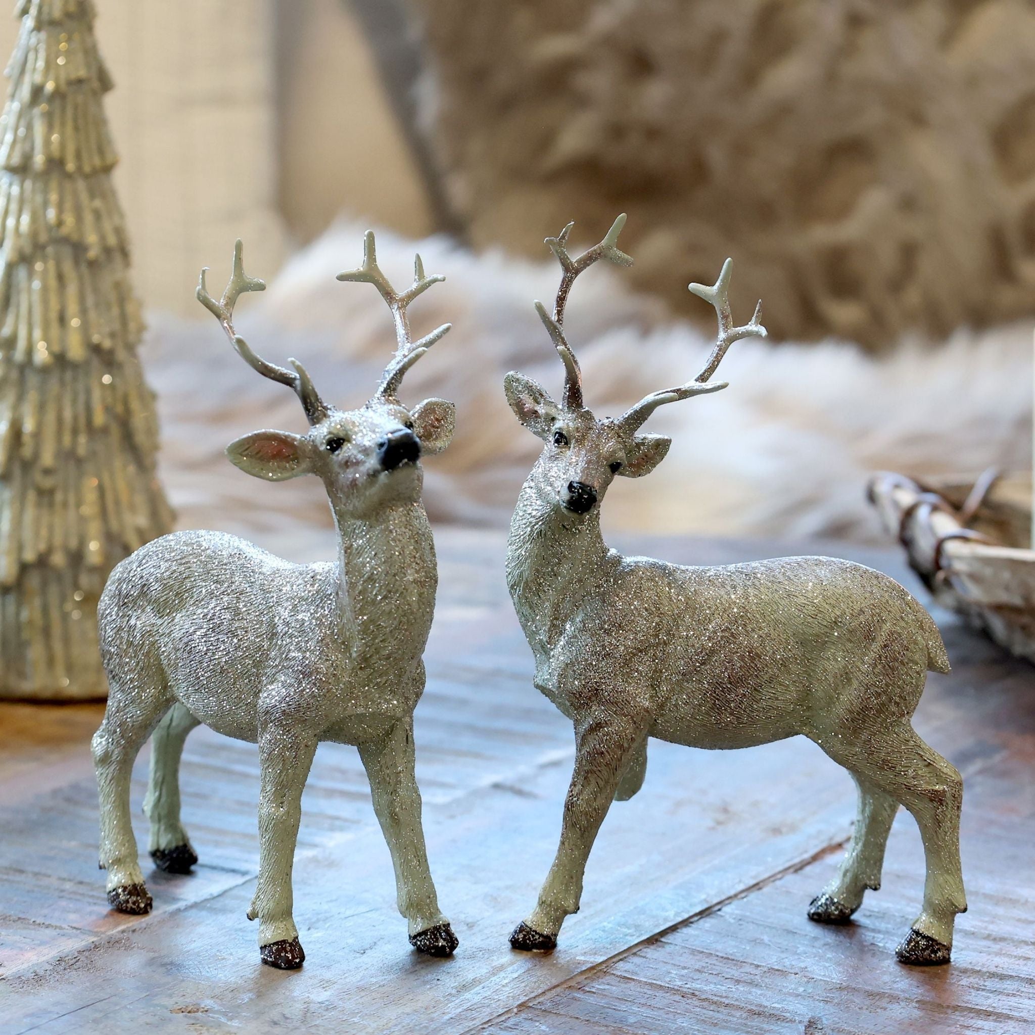 Julepynt rensdyr med glimmer, sæt af 2 stk - Chic Antique