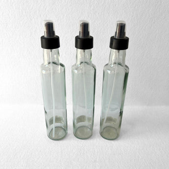 250 ml flaske til madolie. Flasken har en pumpe til at spray, hvilket gør du lettere kan fordele olien på maden uden du kommer til at bruge for meget. Pumpen er lavet til rapsolie og olivenolie.