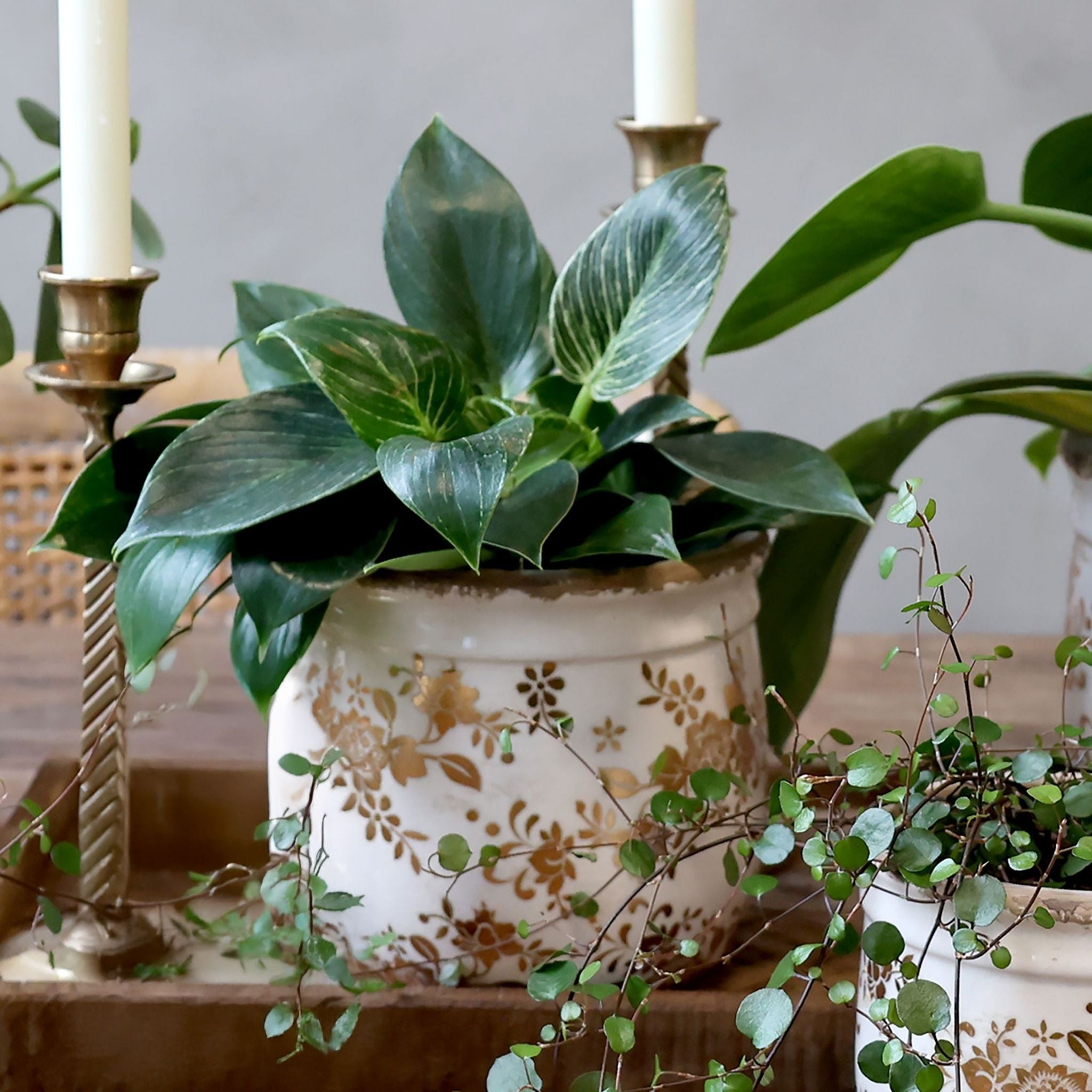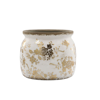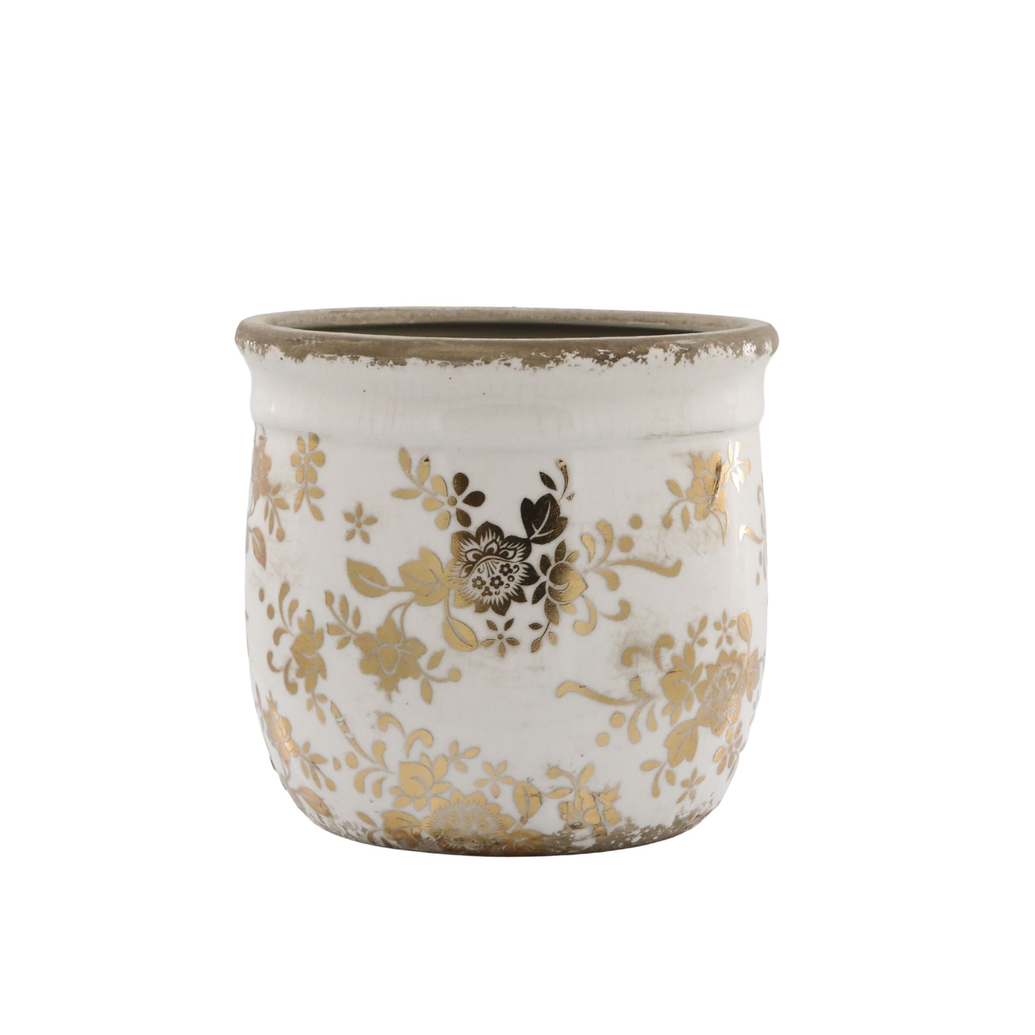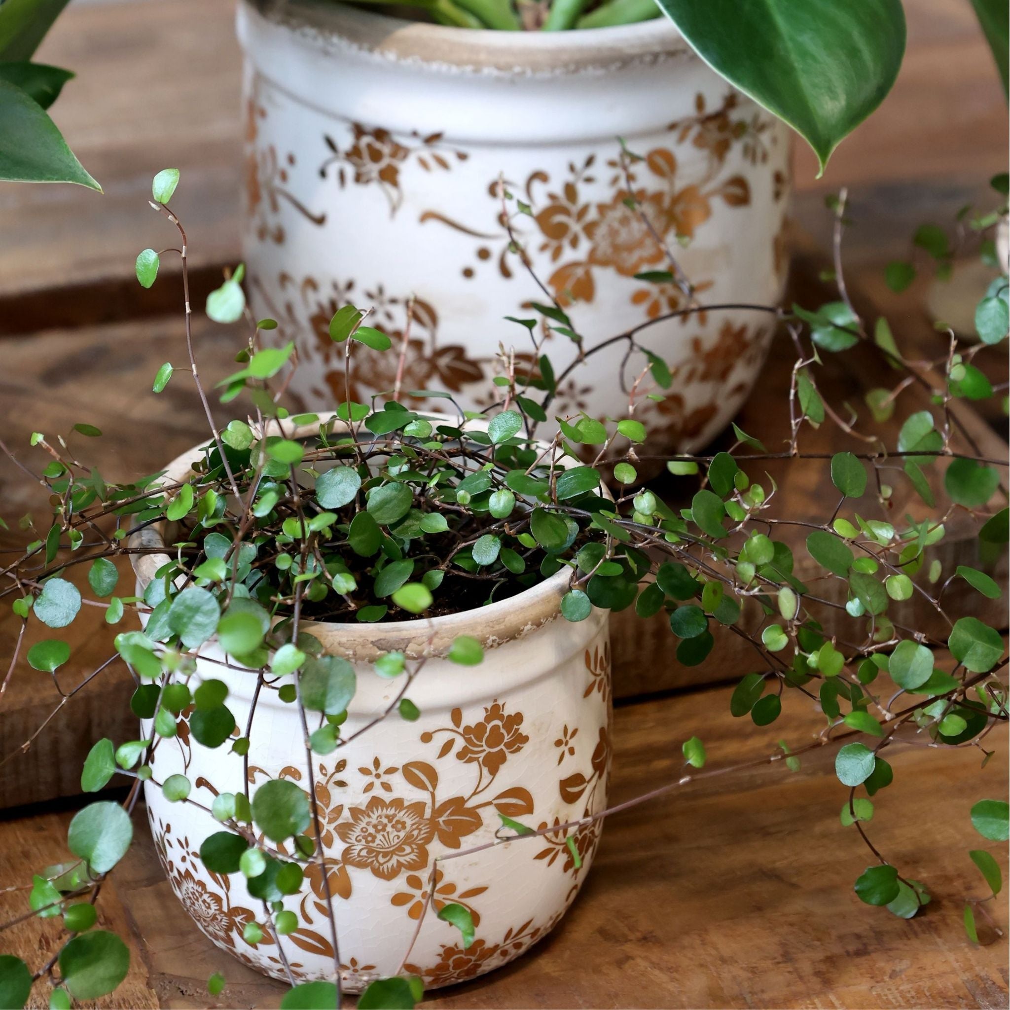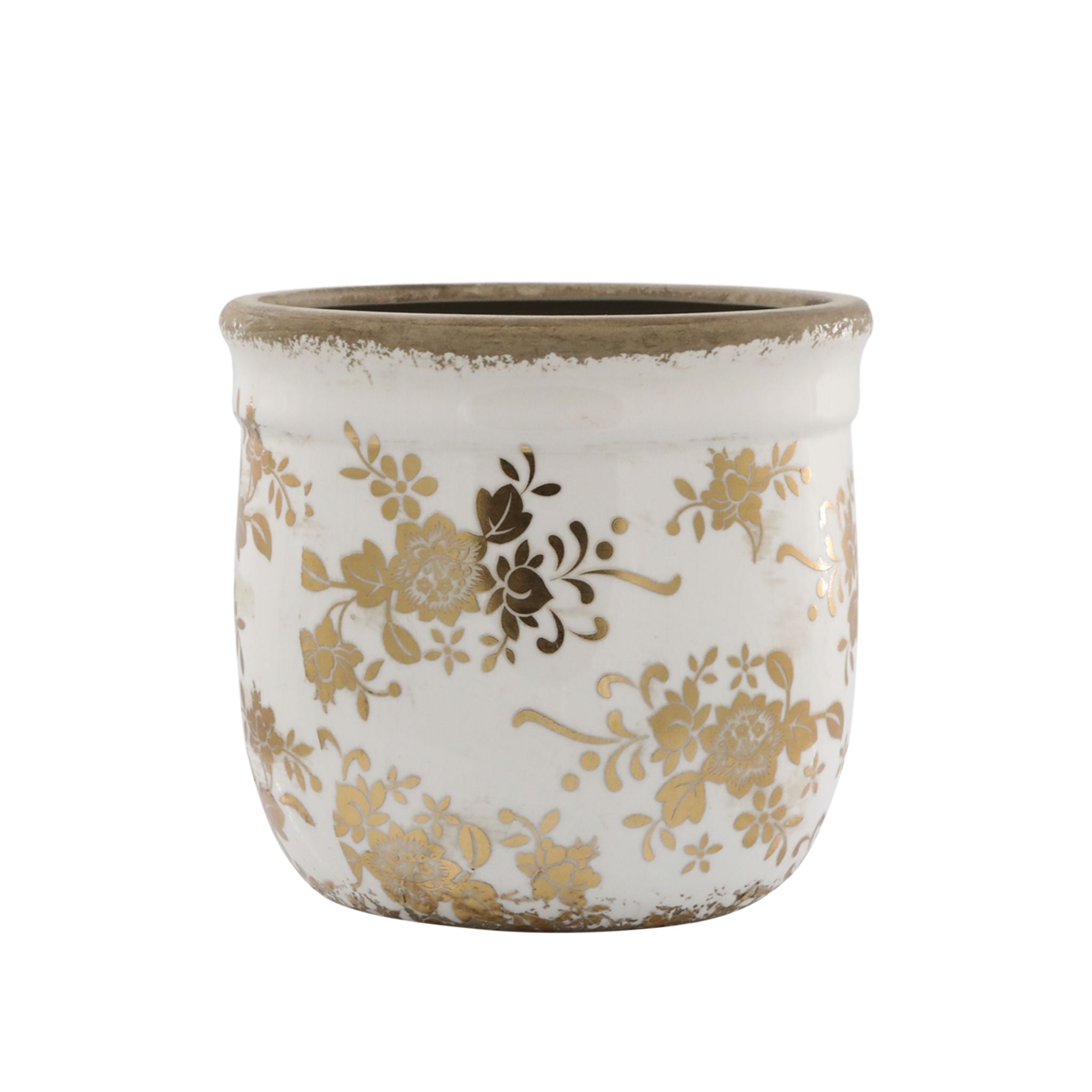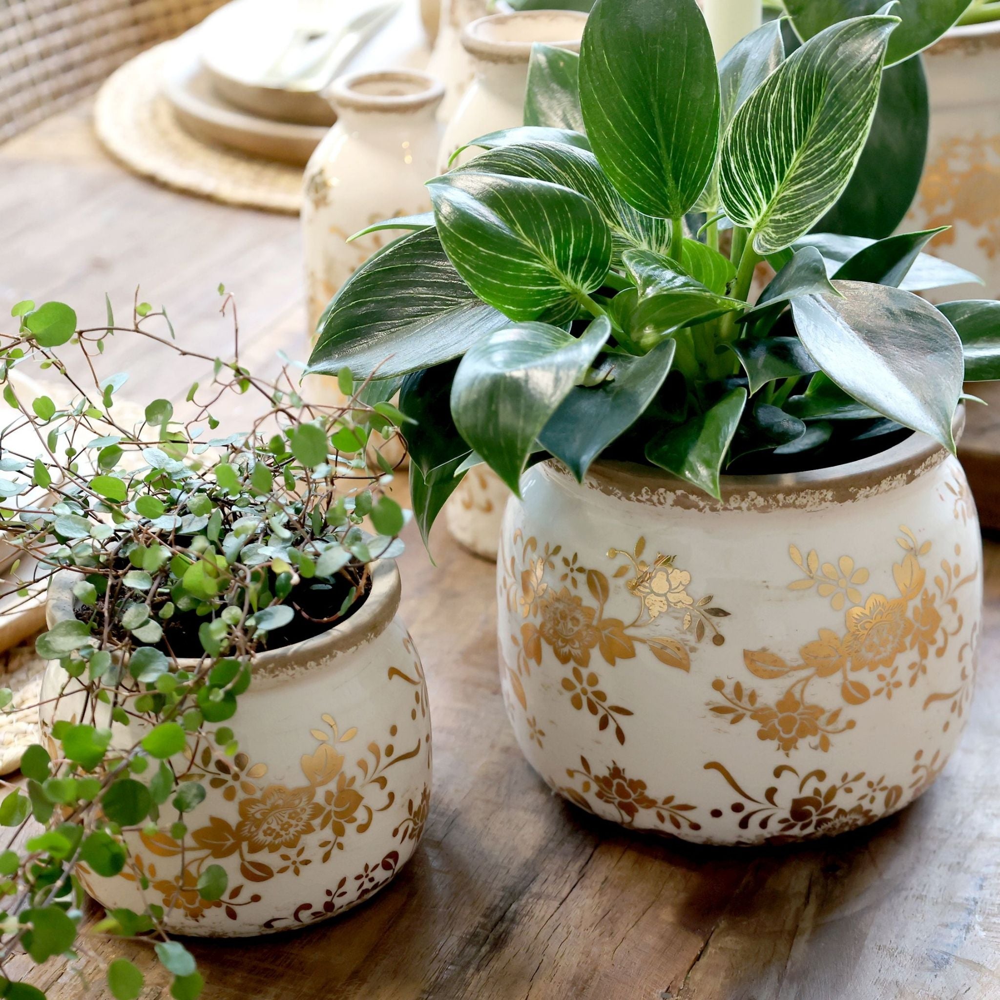 Giv dine planter en smuk indpakning med disse urtepotteskjulere fra Chic Antiques jubilæumsserie Melun. Skjulerne er fremstillet i keramik og kommer i en elegant cremefarve med fint blomstermønster i guld.