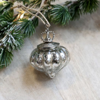 Oplev magien i julen med vores elegante julekugle "Dråbe" til ophæng. Denne eksklusive julekugle er nøje udformet i glas og jern og præsenterer en fortryllende antique sølv finish, der bringer et strejf af vintage elegance til dit juletræ. Dekoreret med en dekortop og smukke simili-detaljer, fanger denne unikke julekugle lyset på smukkeste vis og skaber en glitrende effekt, der vil glæde enhver, der ser den.