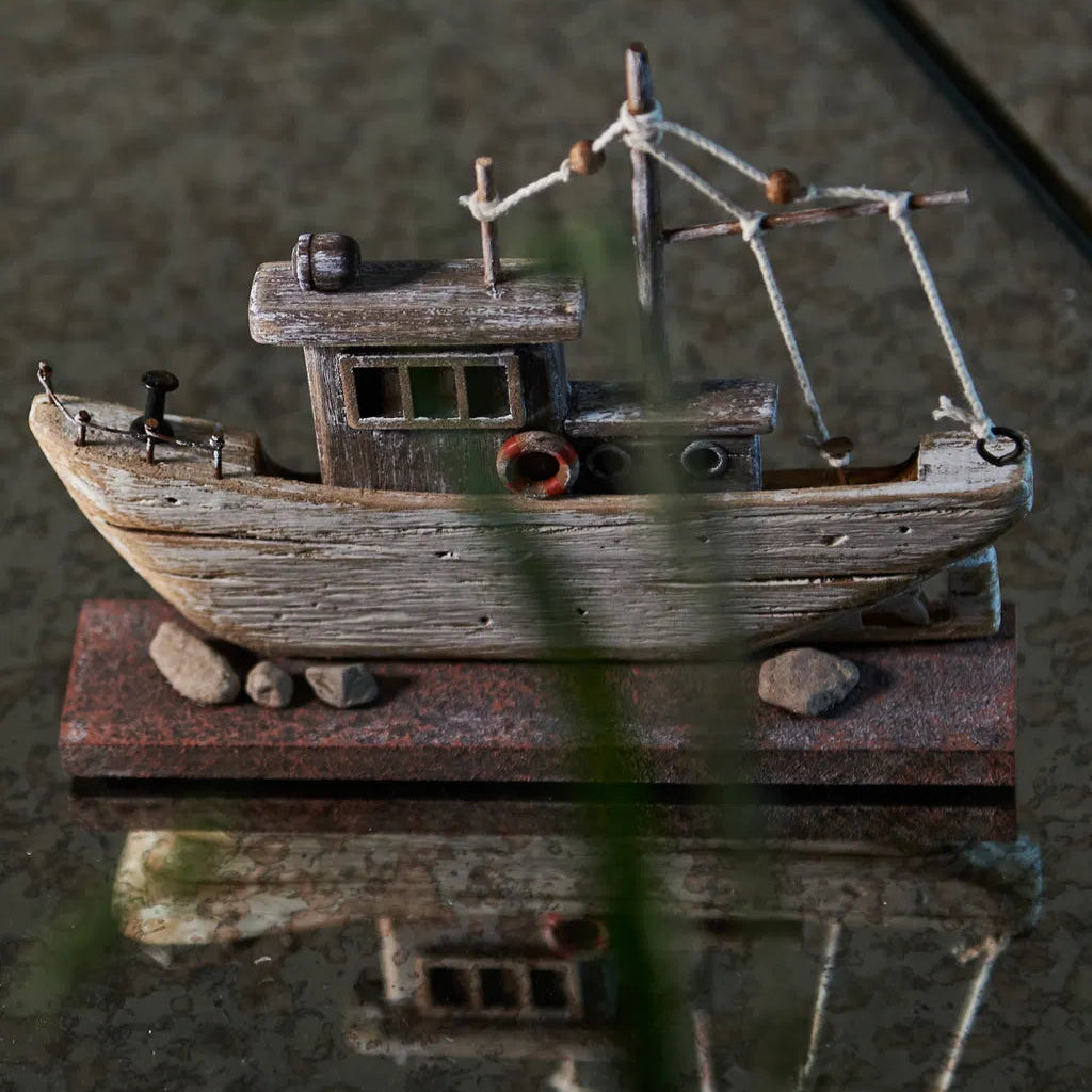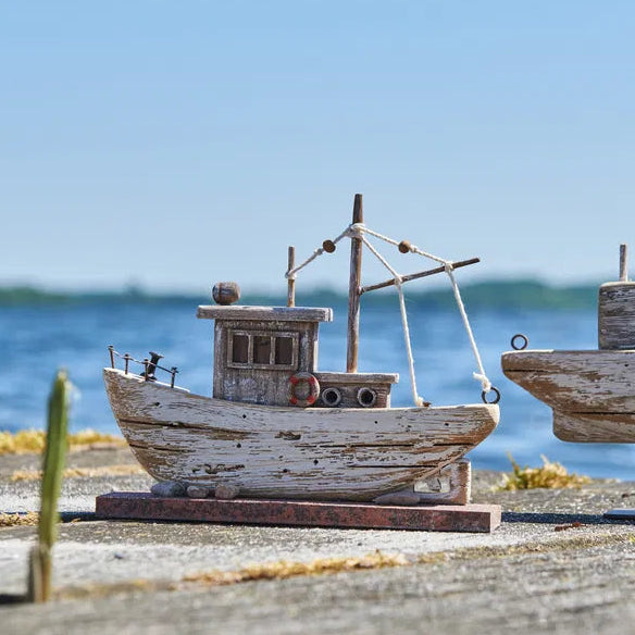 Båden er designet i et slidt look, hvilket giver det ekstra patina og tilføjer et hyggeligt og autentisk pift til din indretning.