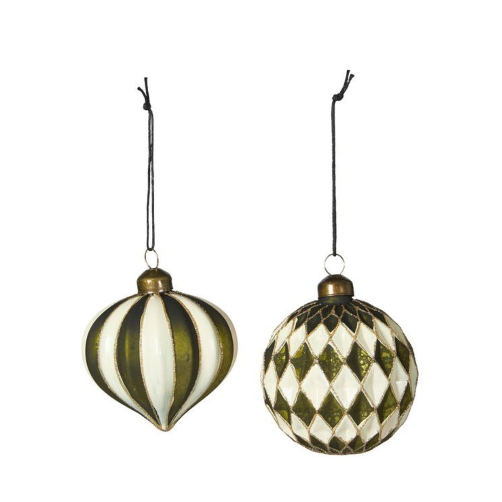Grøn/hvid julekugle - 2 størrelser - Speedtsberg