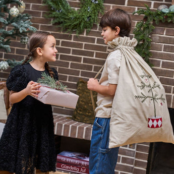 Julesækken i bomuld med broderi er både dekorativ og praktisk, og den skaber straks julestemning i hjemmet.
