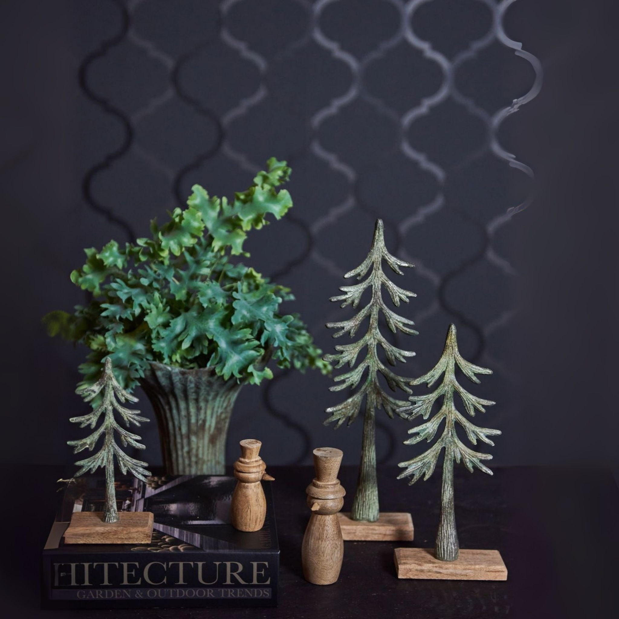 Skab klassisk julestemning med dette antik grønne juletræ i aluminium på en stabil træfod. Træet fås i tre størrelser og passer perfekt ind i både små og store rum, hvor det spreder varme og hygge med sit elegante og tidløse design.
