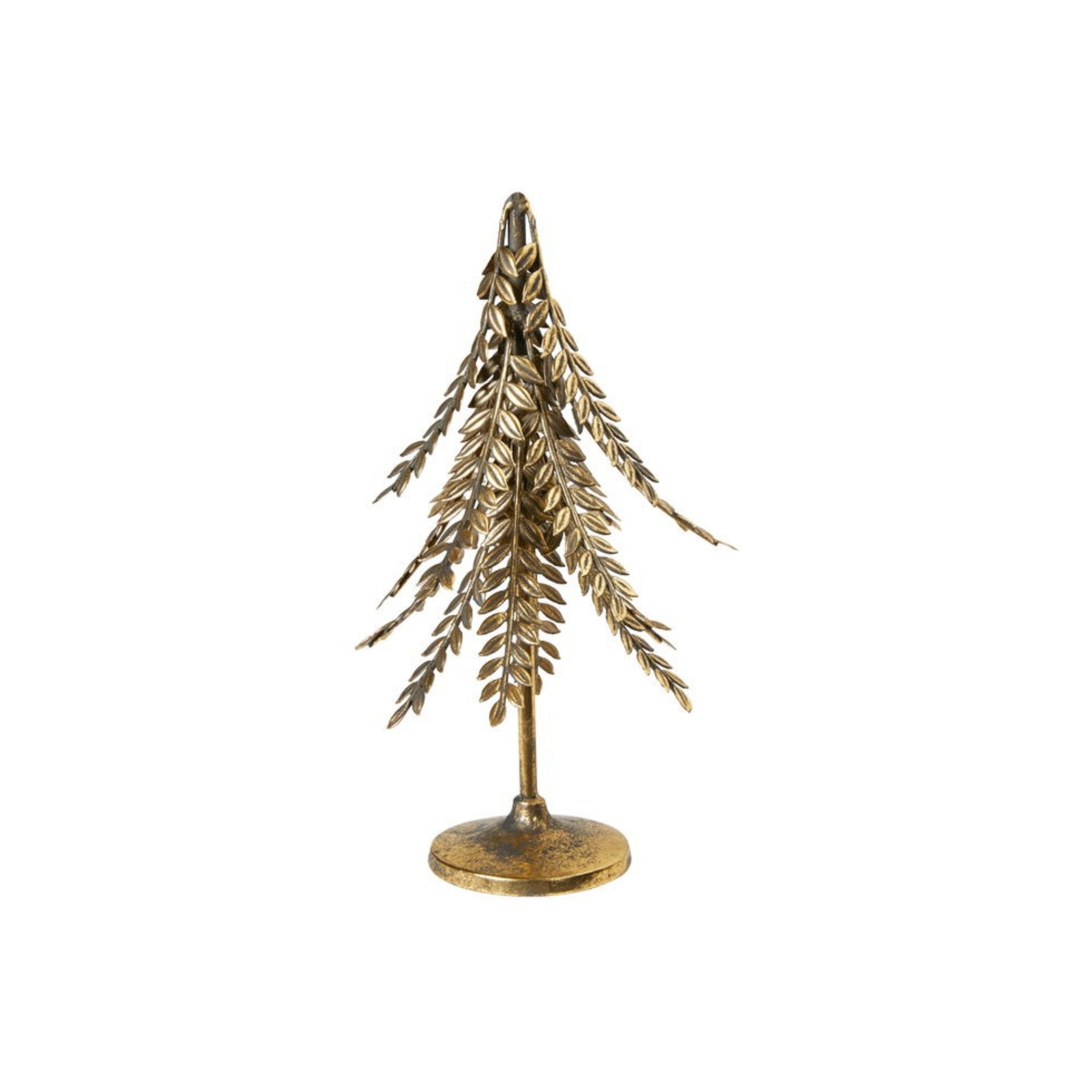 Tilføj et elegant og dekorativt touch til julen med dette juletræ i metal i antik guld.