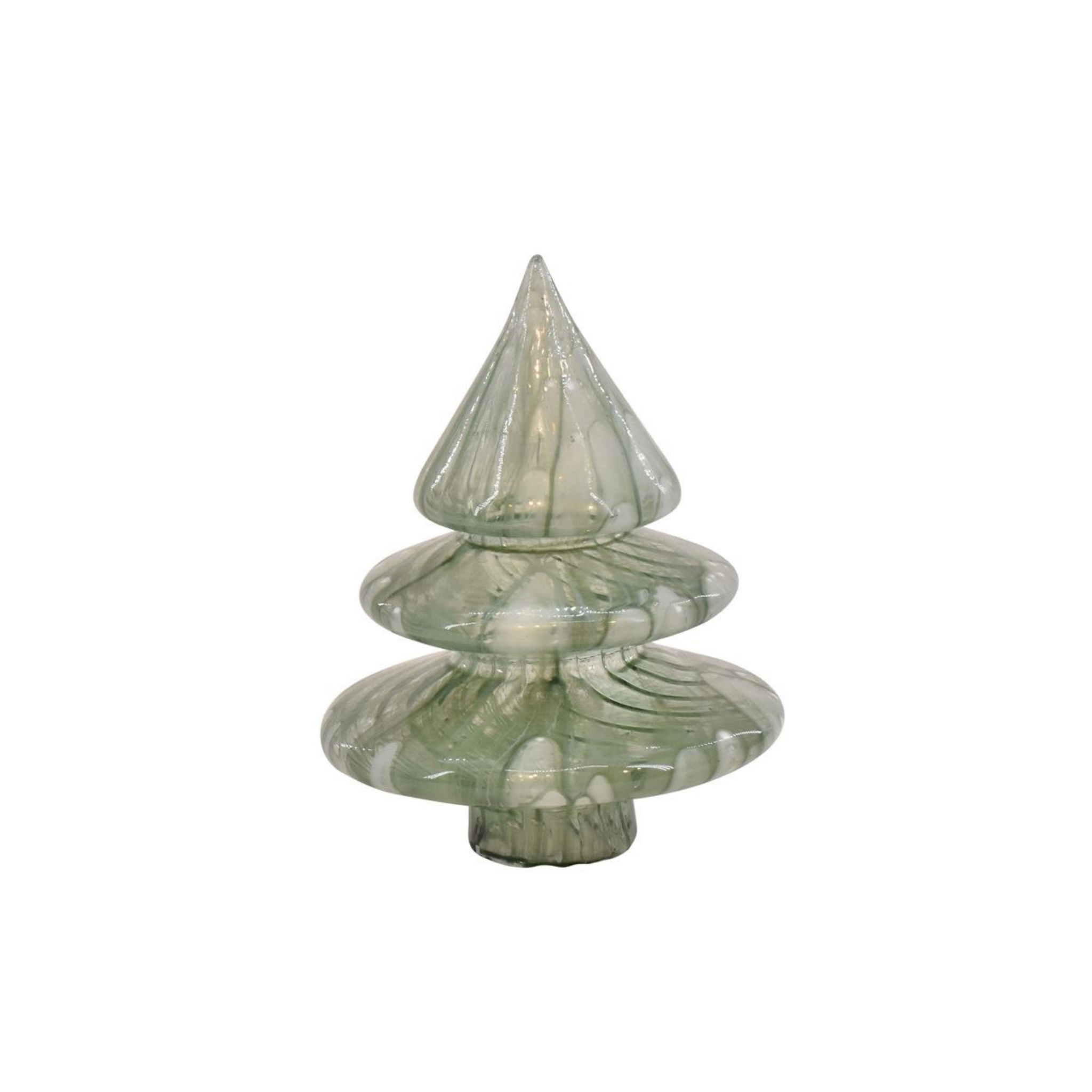 Juletræet i grønt klart glas, der skaber en smuk og elegant julestemning og fungerer perfekt som pynt på bordet, hylden eller i din juledekoration.