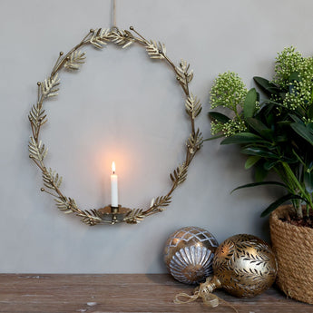Fin og eventyrlig blomsterkrans med lysestage til kertelys. For mange betyder julen hygge indenfor i skæret fra de mange hyggelig lys. Med dette fine ophæng kan du tilføje noget ekstra hygge til julebelysningen.