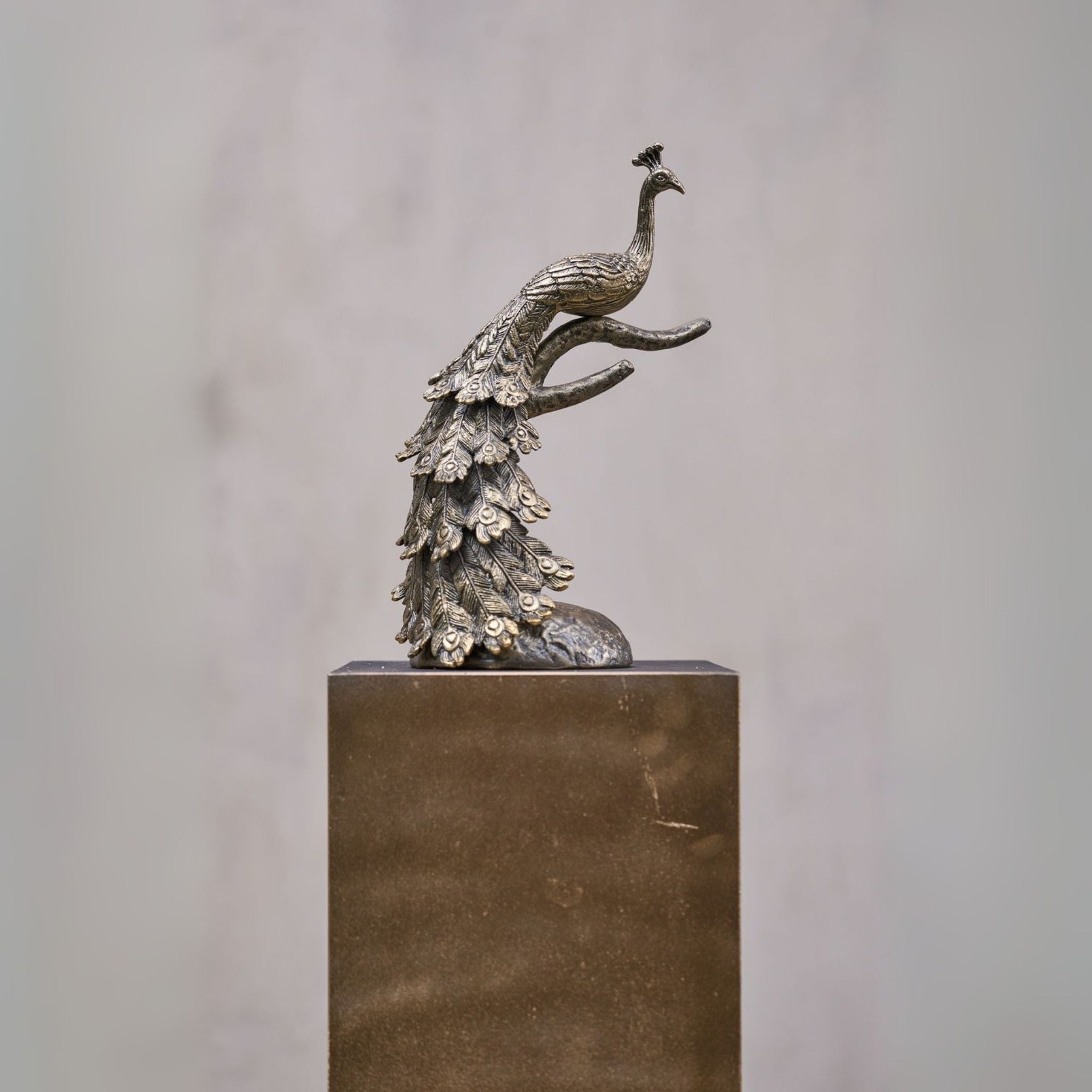 Påfugl på gren i antik mørk guld - Speedtsberg