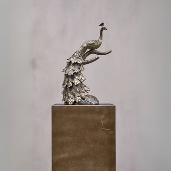 Giv dit hjem et sofistikeret og dekorativt præg med denne påfugl i antik mørk guld, elegant placeret på en gren. Den fine detaljering og den eksklusive farve gør den til et smukt og iøjnefaldende blikfang.
