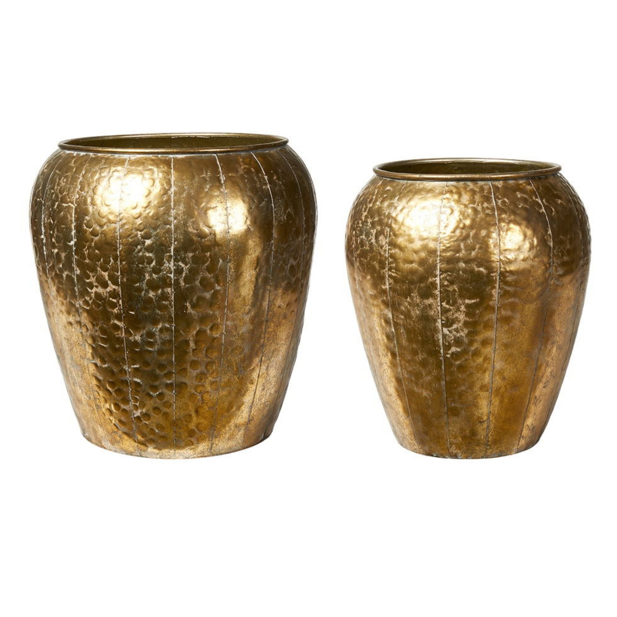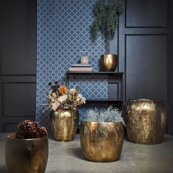 Giv dine planter et stilfuldt hjem med dette sæt af to planteskjulere i antik guld. Med deres elegante og tidløse design passer de perfekt til både små og store planter og tilføjer et varmt og dekorativt touch til ethvert rum.