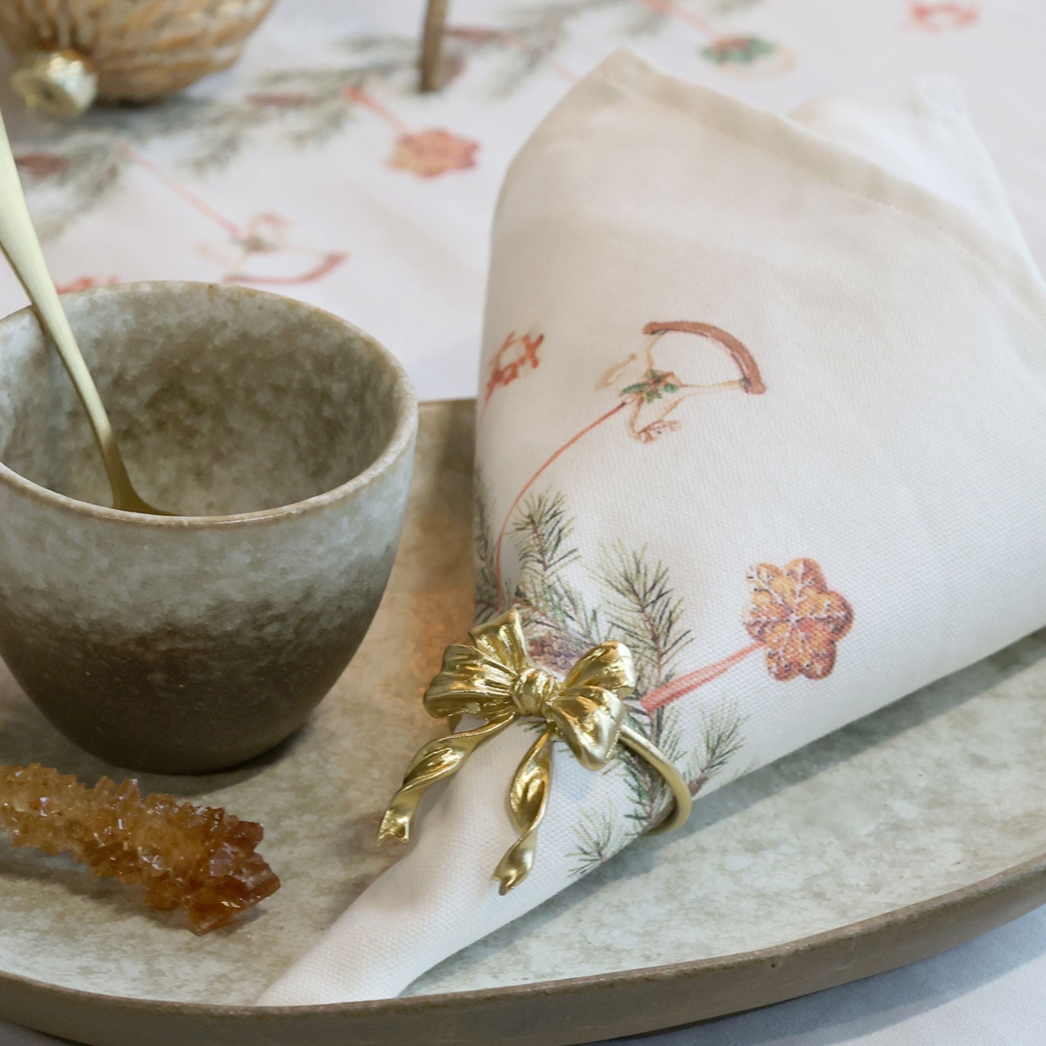 Tilføj et strejf af elegance til dit julebord med disse smukke servietringe med sløjfer fra Chic Antique. De fine servietringe i gyldent emmer af julestemning og klassisk charme. Servietringene passer perfekt sammen med de flotte juleduge og servietter.