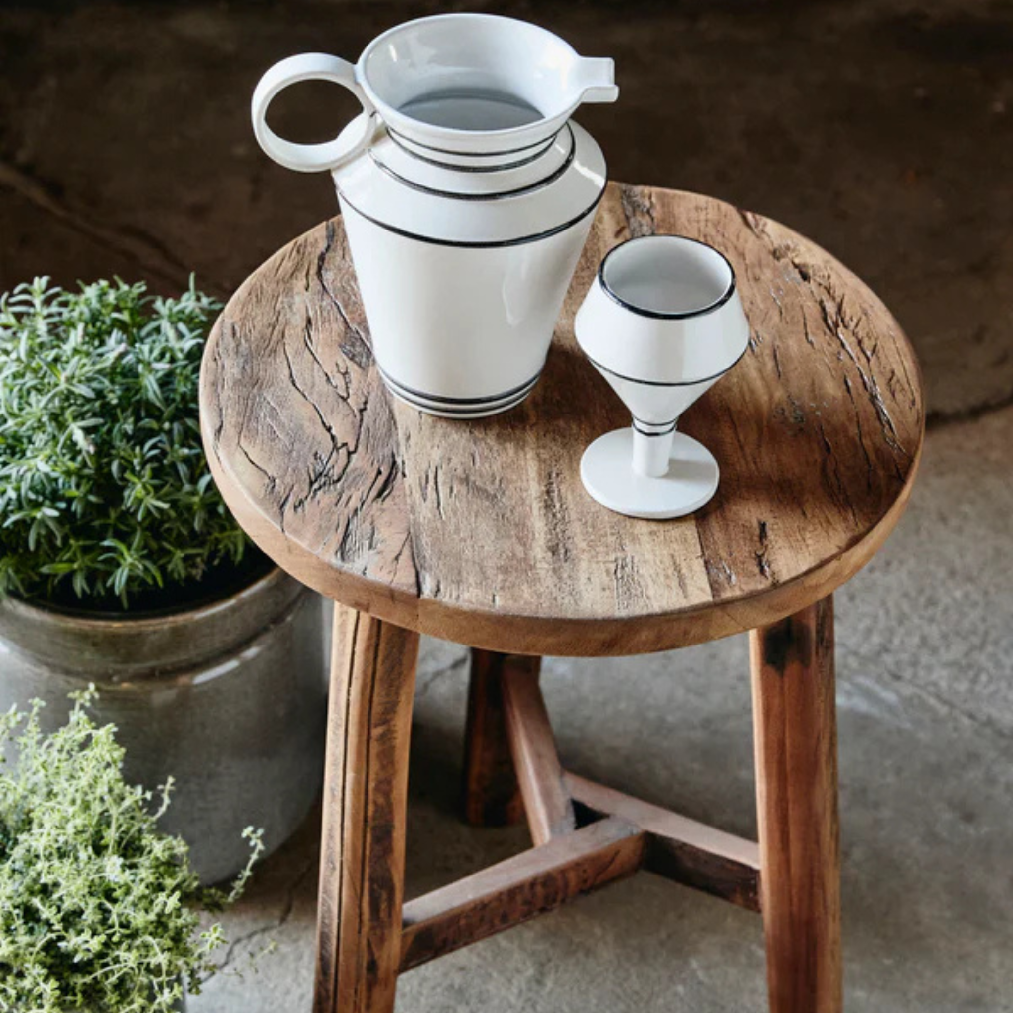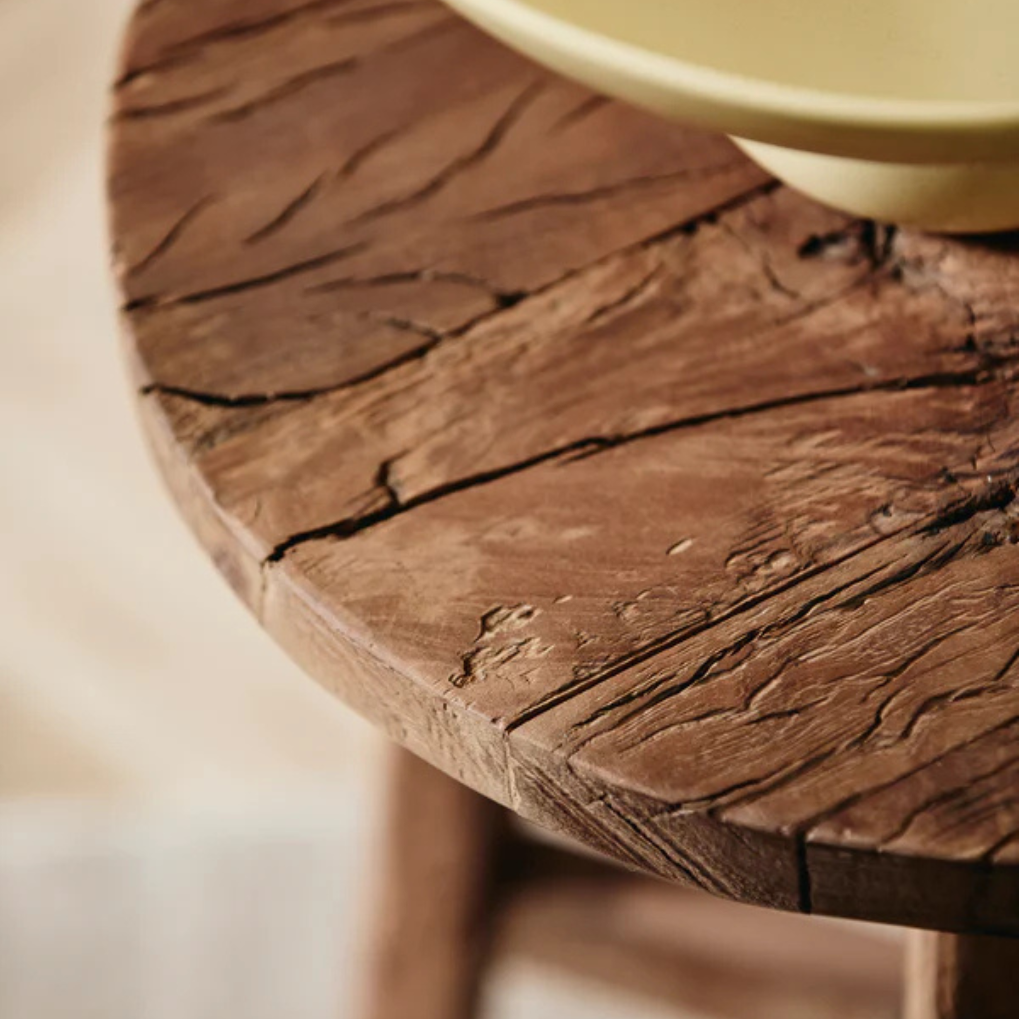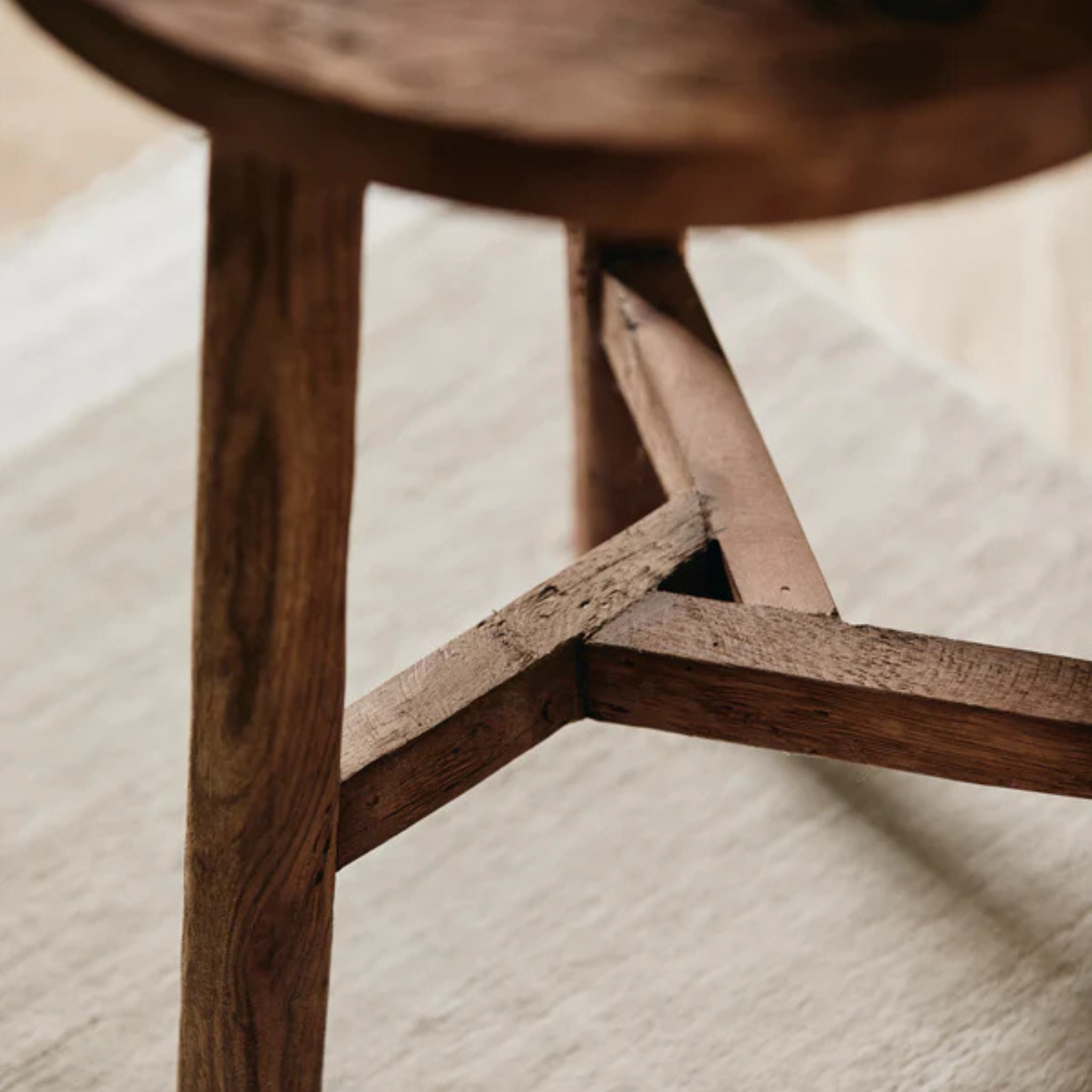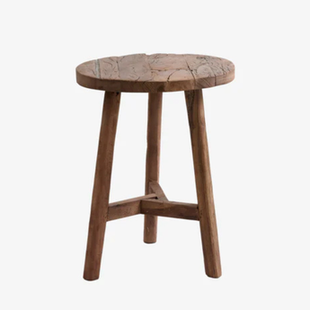 Denne skammel i genbrugstræ har masser af patina, med de fine små revner og struktur i træet.