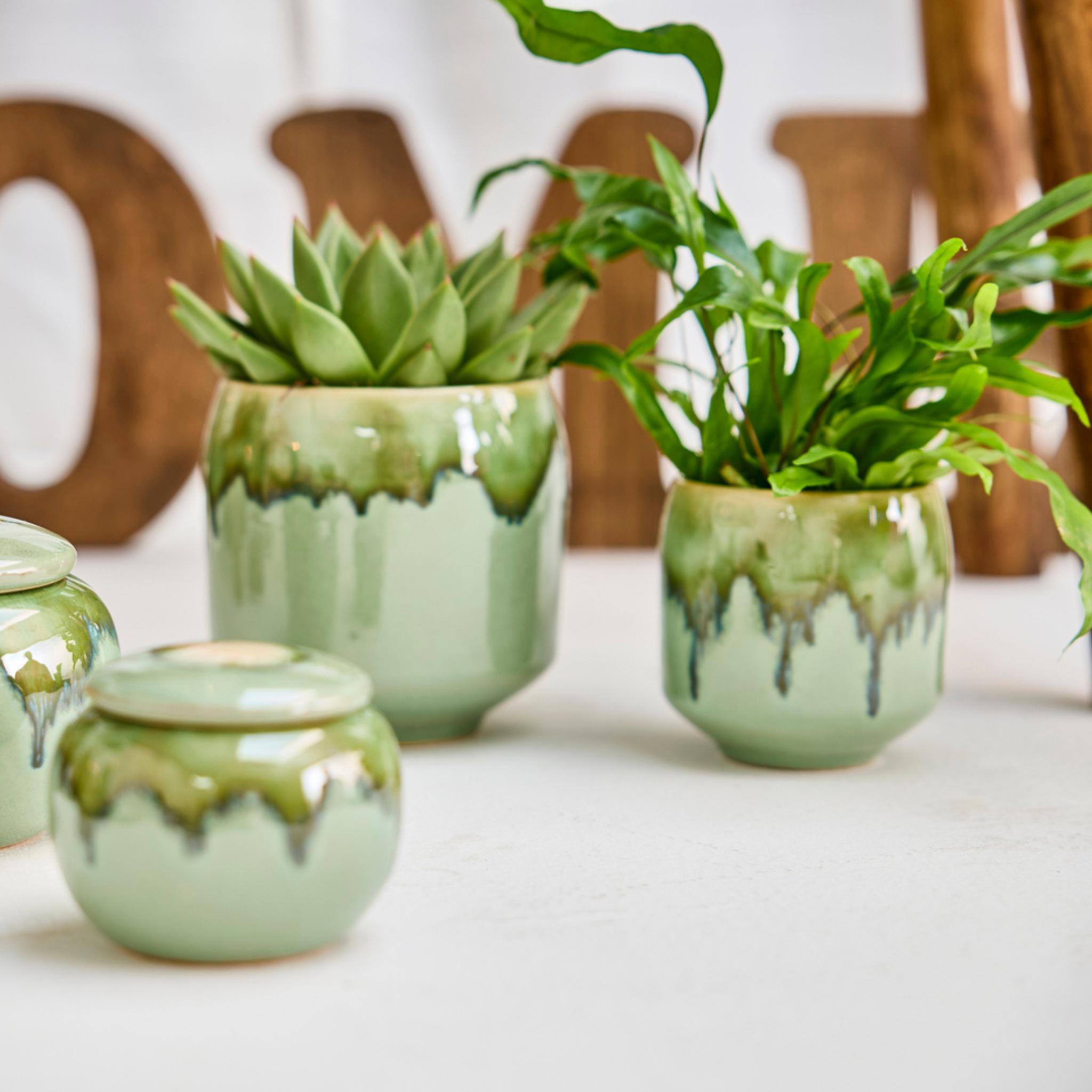 Lav evt. et match med krukkerne med låg i samme stil og farve.