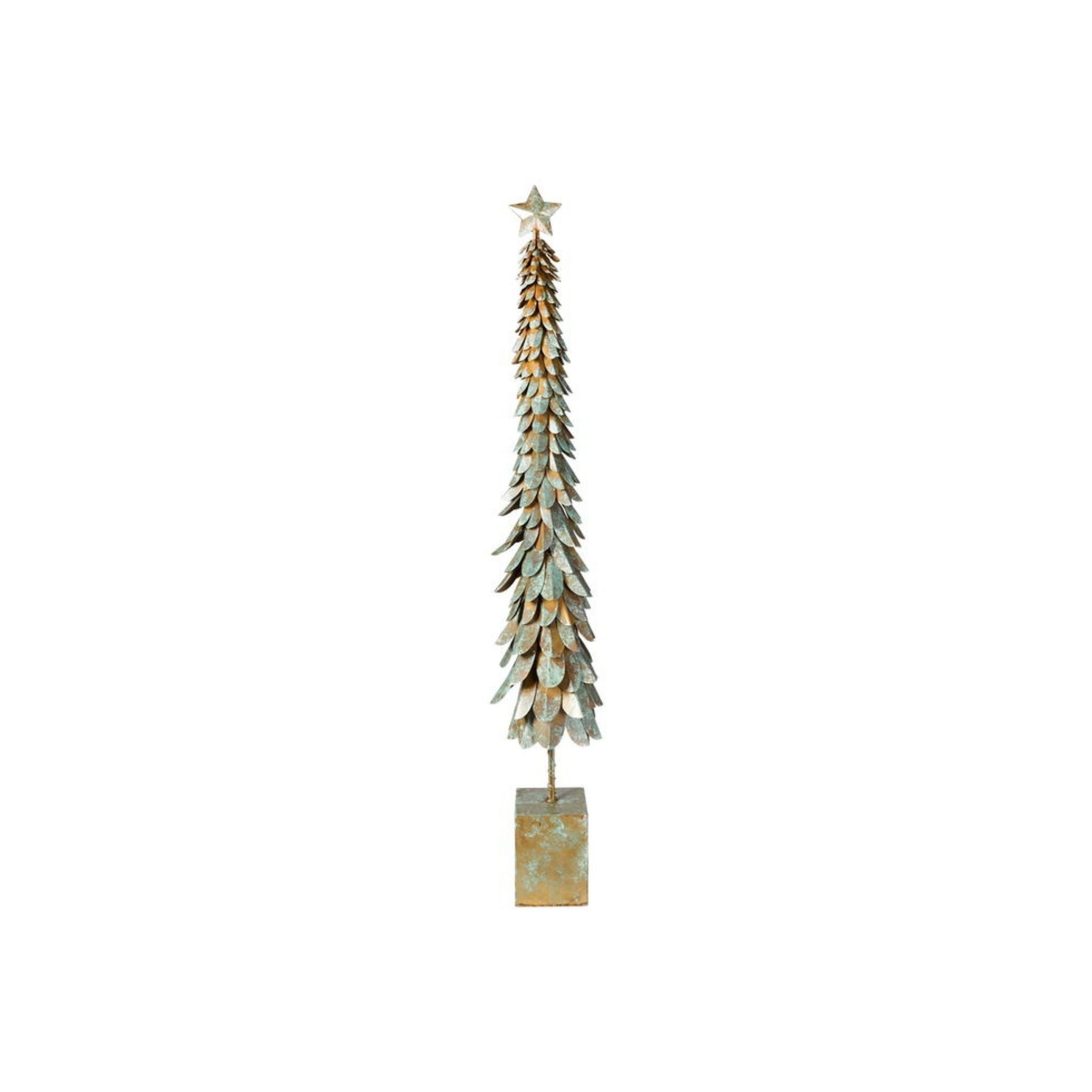 Skab et imponerende julefokus med dette juletræ i metal i antik bronze på fod med topstjerne.